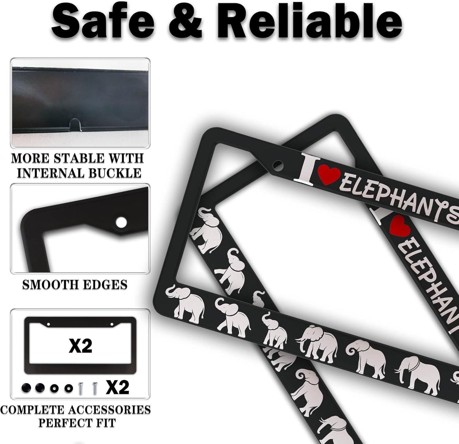 License Plate Frames Black and White Fun License Plate Frame Cover I Love Elephants Universal Aluminum Car Accessory 2 Pack with Screw Covers Set