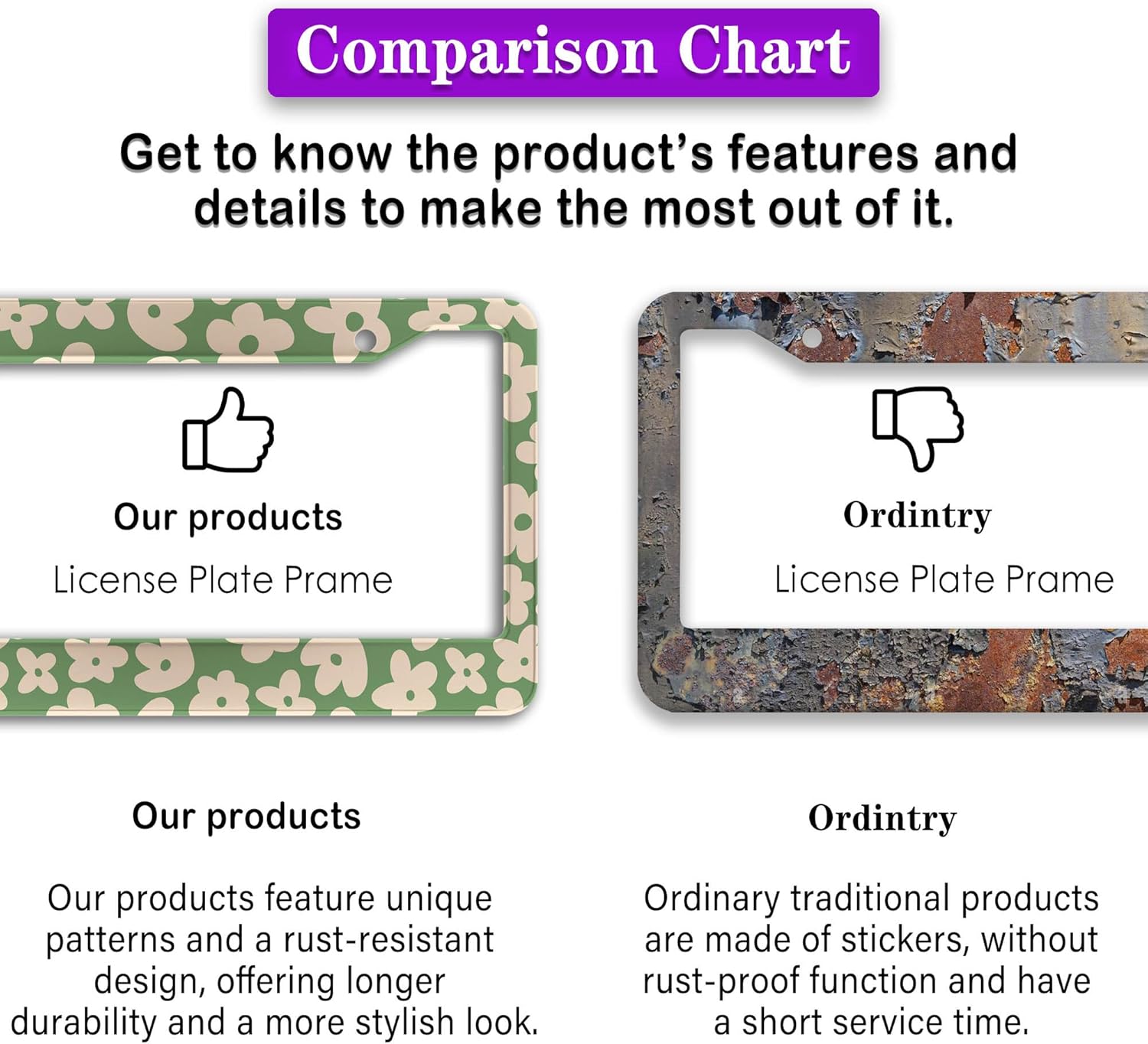 - ALUMINUM FRAME: This License Plate Frame is crafted from high-quality aluminum that is resistant to corrosion, rust, and harsh weather conditions. Its rugged reliability design ensures a long lifespan, making it capable of withstanding car washes and extreme weather, providing you with a reliable and stylish solution for your vehicle.