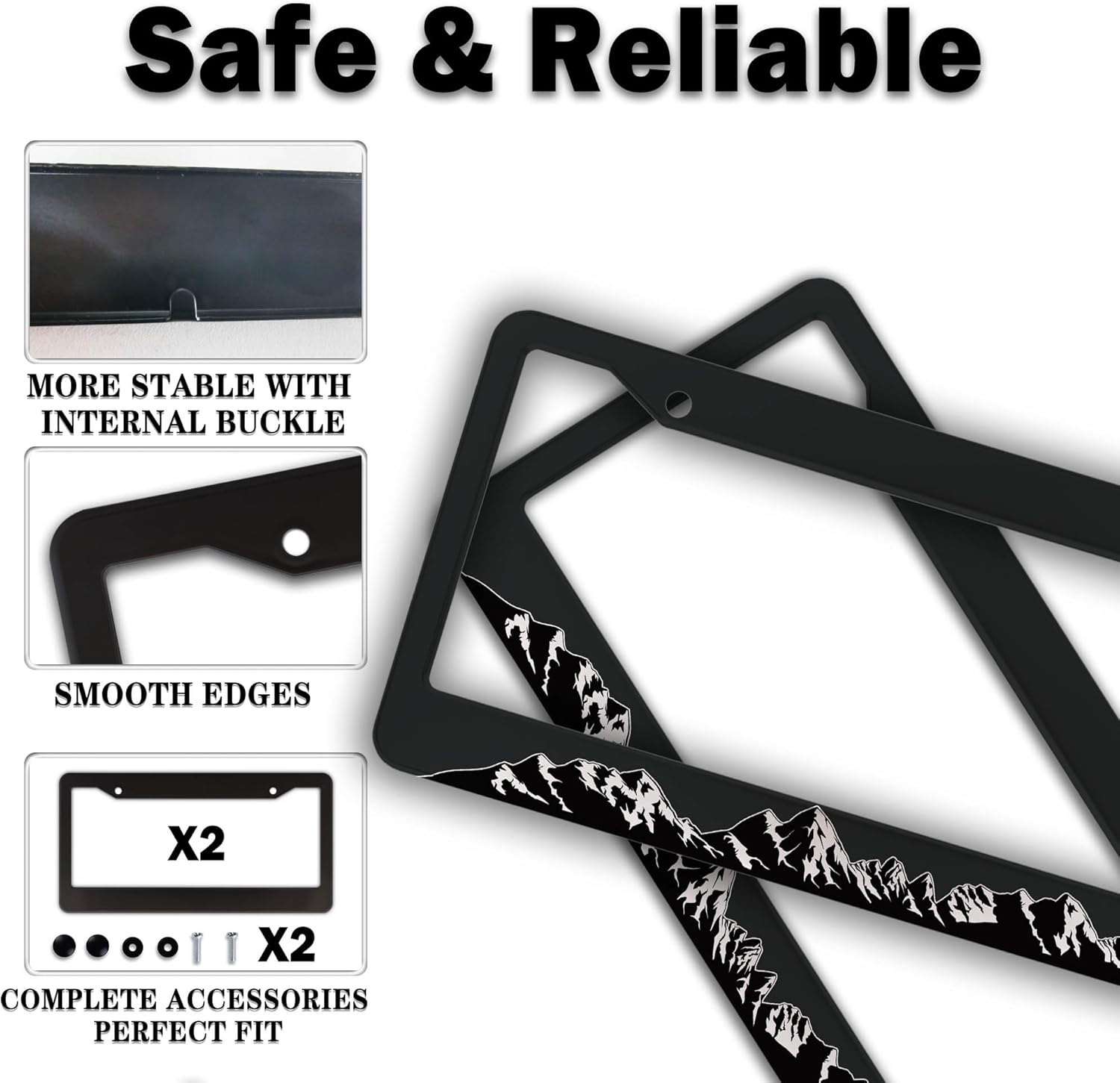 License Plate Frames for Men Black and White License Plate Frame for Women Mountains Aluminum Metal Car Accessory 2 Pack with Screw Covers Set