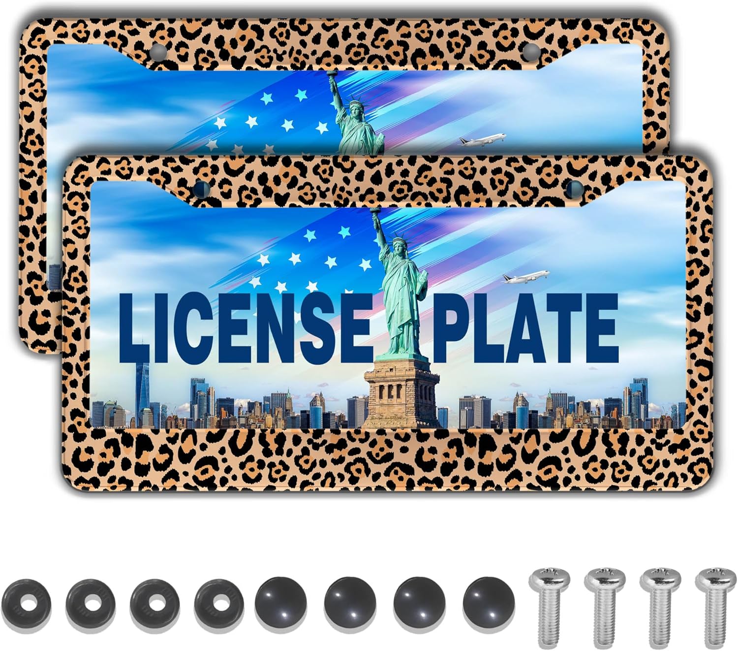 License Plate Frames Leopard Print Fun License Plate Frame Protector Cute Cheetah Texture Aluminum Metal Car Accessory 2 Pack with Screw Covers Set