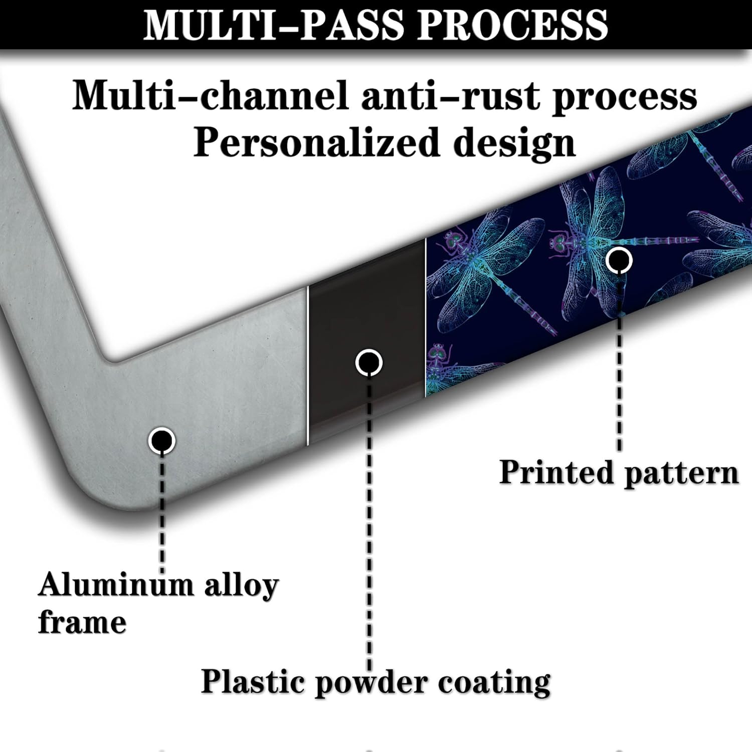 License Plate Frames Black Blue Automotive Exterior Accessories Beautiful Dragonfly Insects Aluminum Metal Car Accessory 2 Pack with Screw Covers Set
