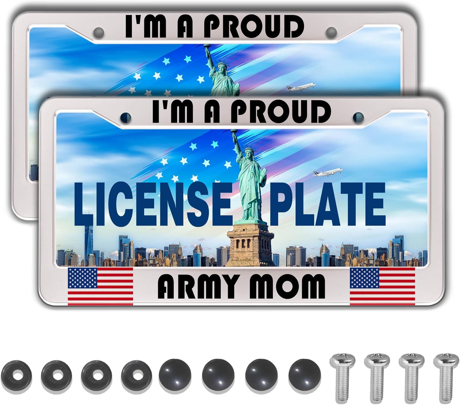 License Plate Frame Holder Black and White License Plate Frames I’m a Proud Army Mom Universal Aluminum Car Accessory 2 Pack with Screw Covers Set