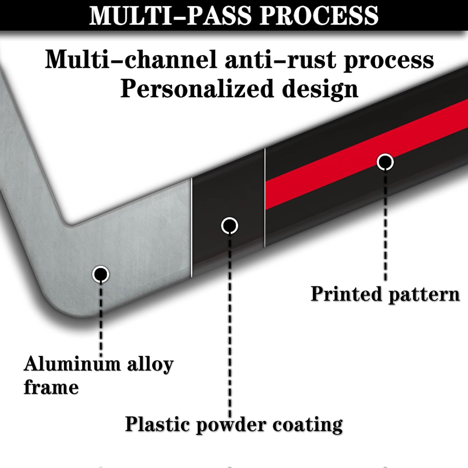 License Plate Cover Black and Red License Plate Frames Firefighter Red Line Flag Universal Aluminum Car Accessory 2 Pack with Screw Covers Set