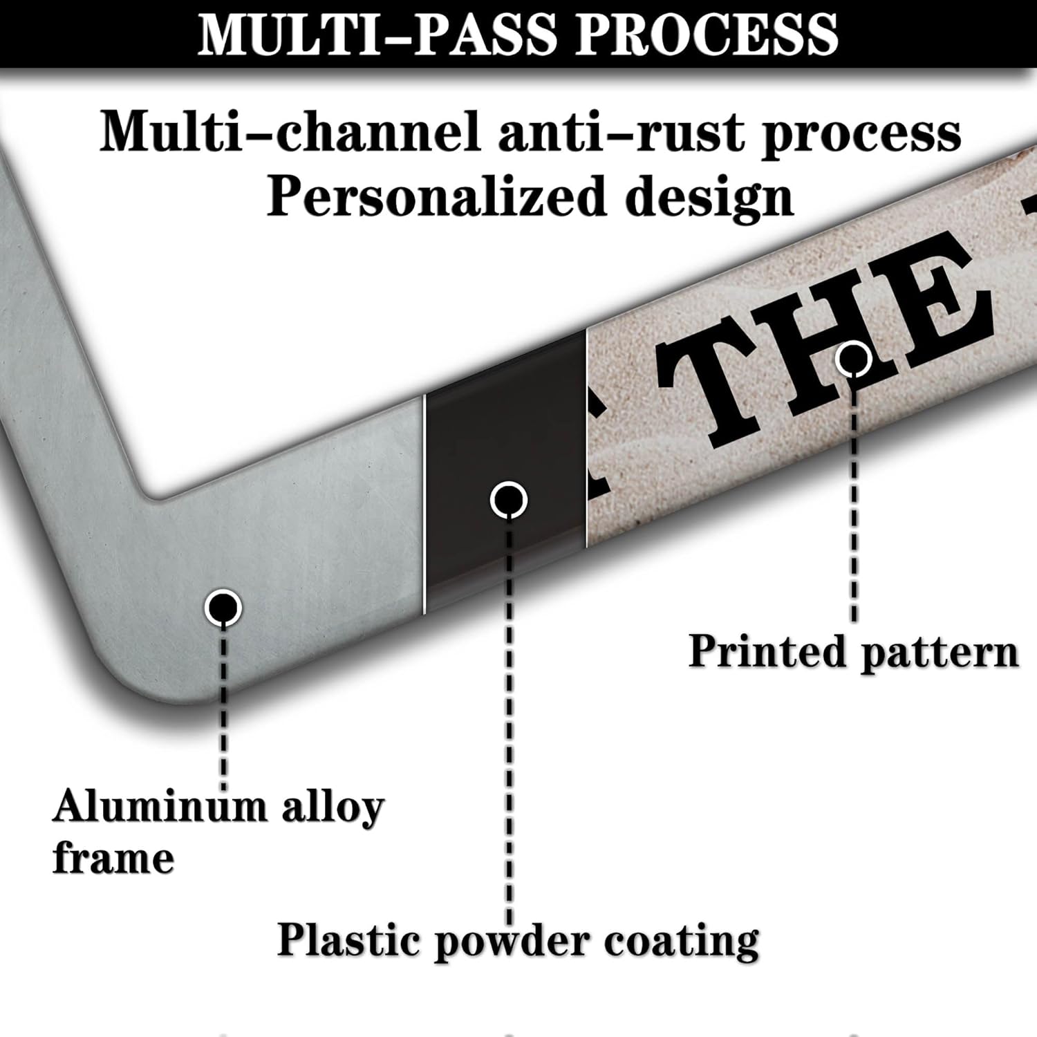 - ALUMINUM FRAME: This License Plate Frame is crafted from high-quality aluminum that is resistant to corrosion, rust, and harsh weather conditions. Its rugged reliability design ensures a long lifespan, making it capable of withstanding car washes and extreme weather, providing you with a reliable and stylish solution for your vehicle.