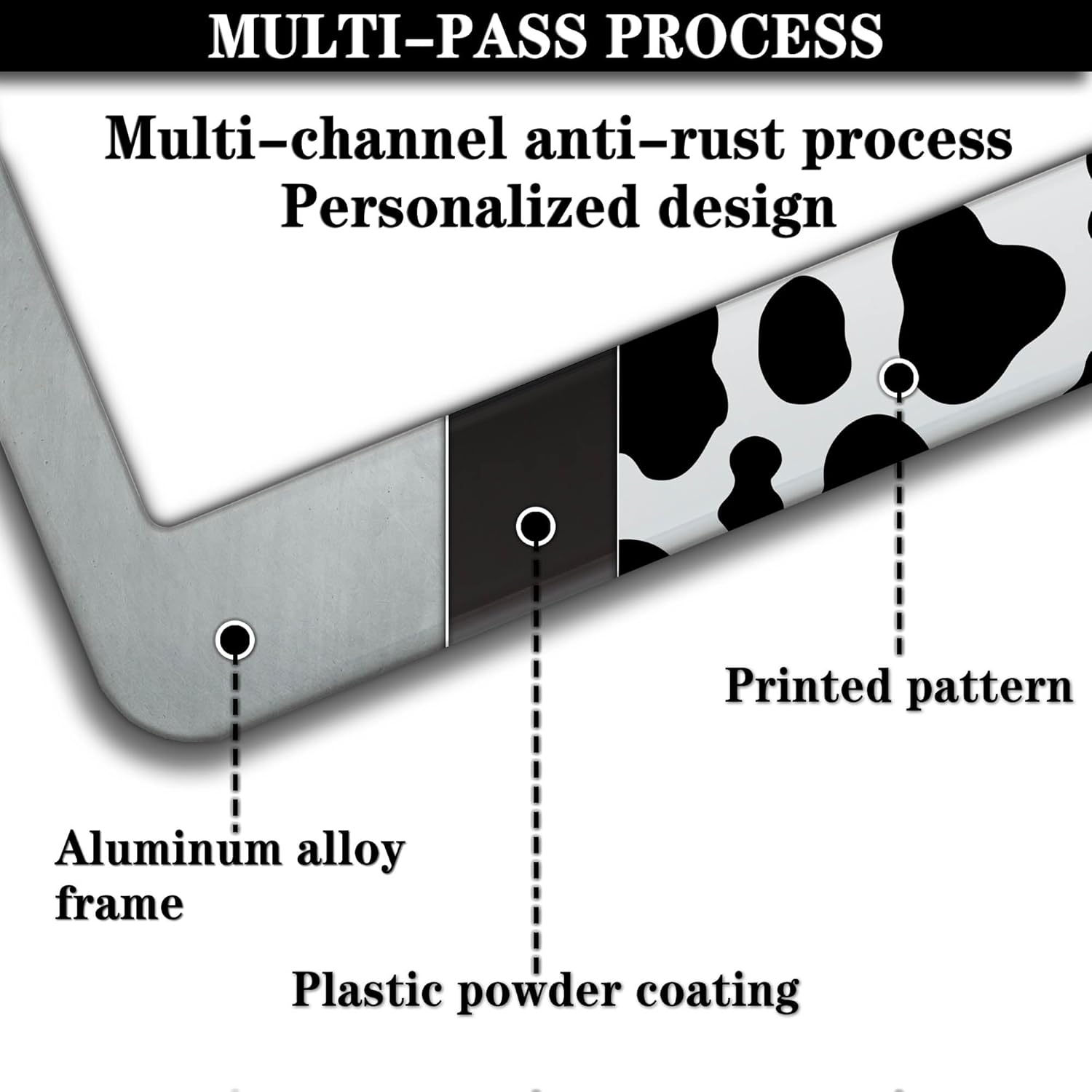 License Plate Frames Black and White License Plate Frame Animal Cow Print White Black Spot Design Universal Aluminum Car Accessory 2 Pack with Screw Covers Set