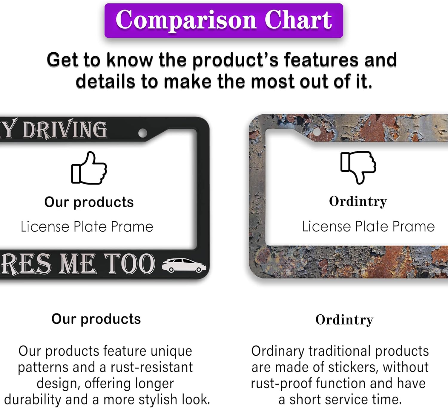 - FUNNY DESIGN: Featuring a unique and customized design, this license plate frame creates an eye-catching and bold statement for your vehicle. Not only does it add a touch of personality to your car, but it also makes for a great holiday gift, souvenir, or decorative piece for family, friends, and colleagues. Elevate your vehicle's style while sharing a laugh!