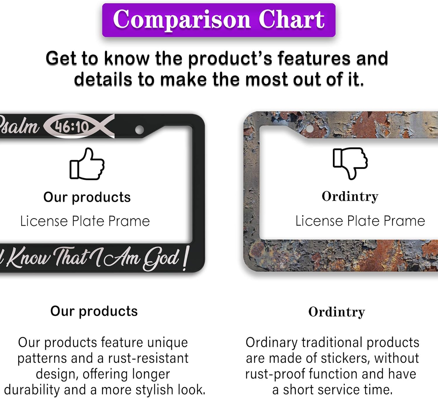 License Plate Frames Black and White License Plate Frame Psalm 46:10 Be Still and Know That I Am God Aluminum Metal Car Accessory 2 Pack with Screw Covers Set