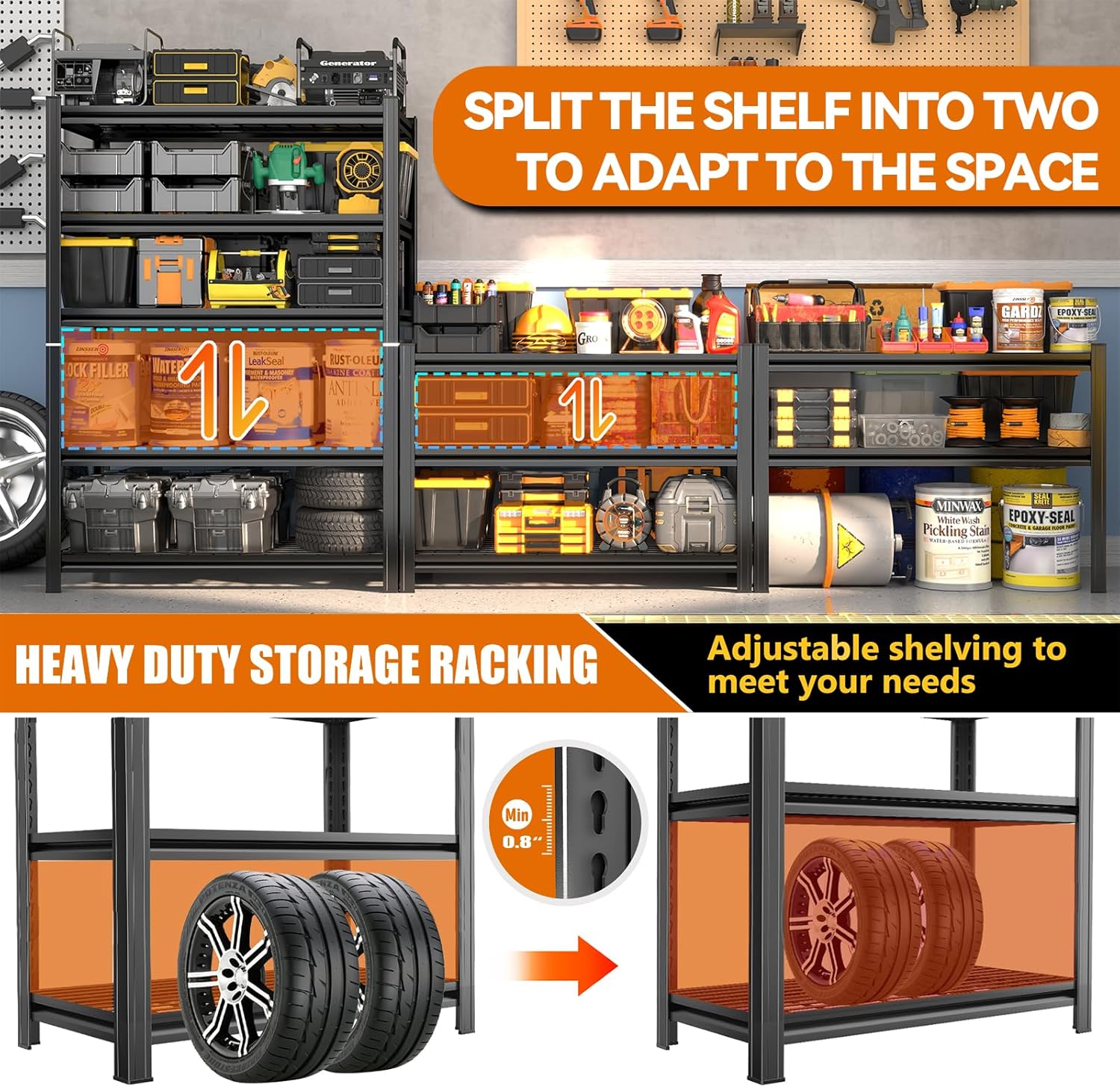 - 【Extremely Sturdy & Durable Garage Shelving】Constructed from high-strength premium cold-rolled steel with advanced powder-coated technology, this metal shelving unit resists rust, oxidation, and wear. The industrial-grade coating not only enhances aesthetics but also boosts durability, making it a heavy-duty shelving solution for long-term use