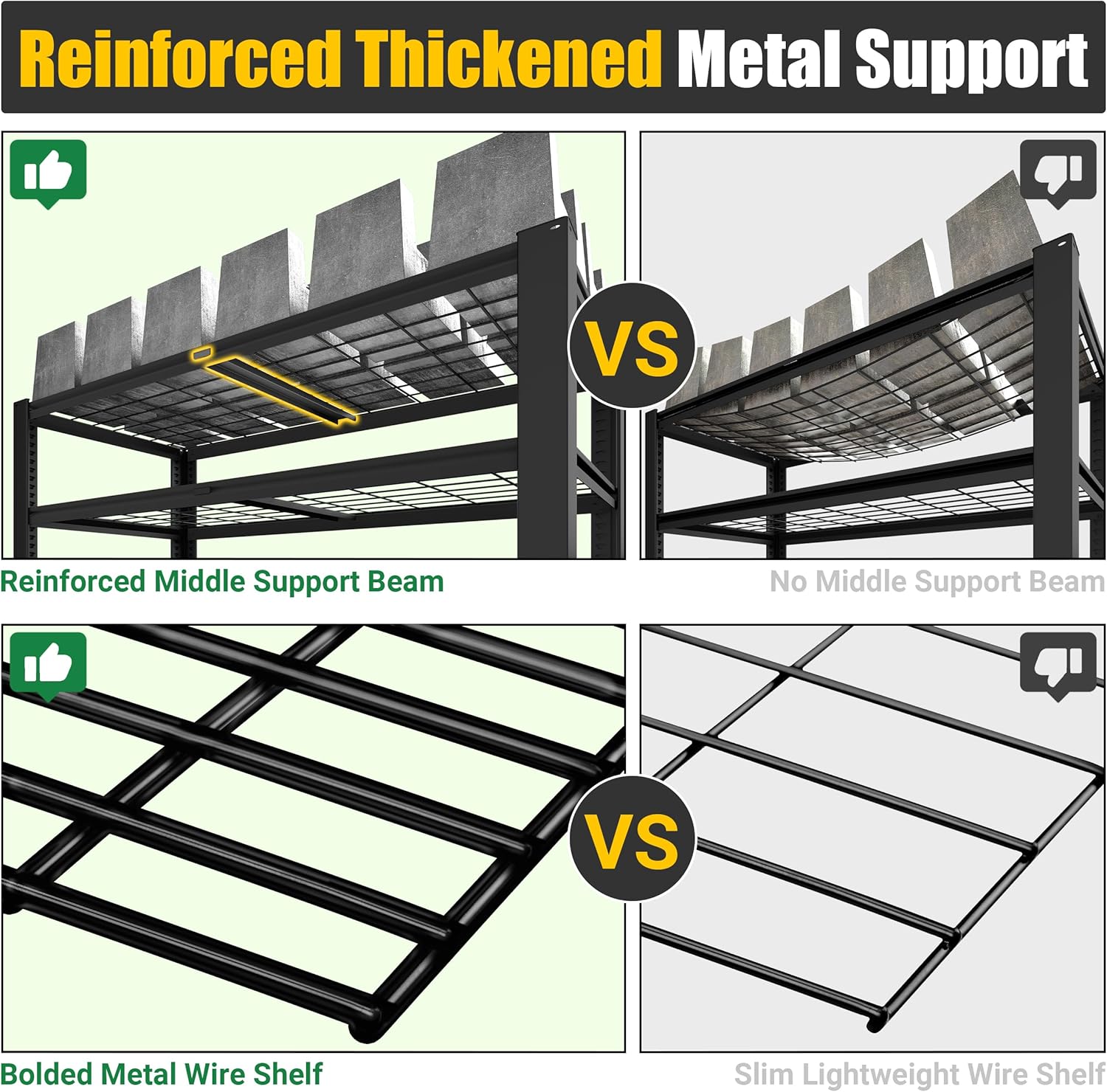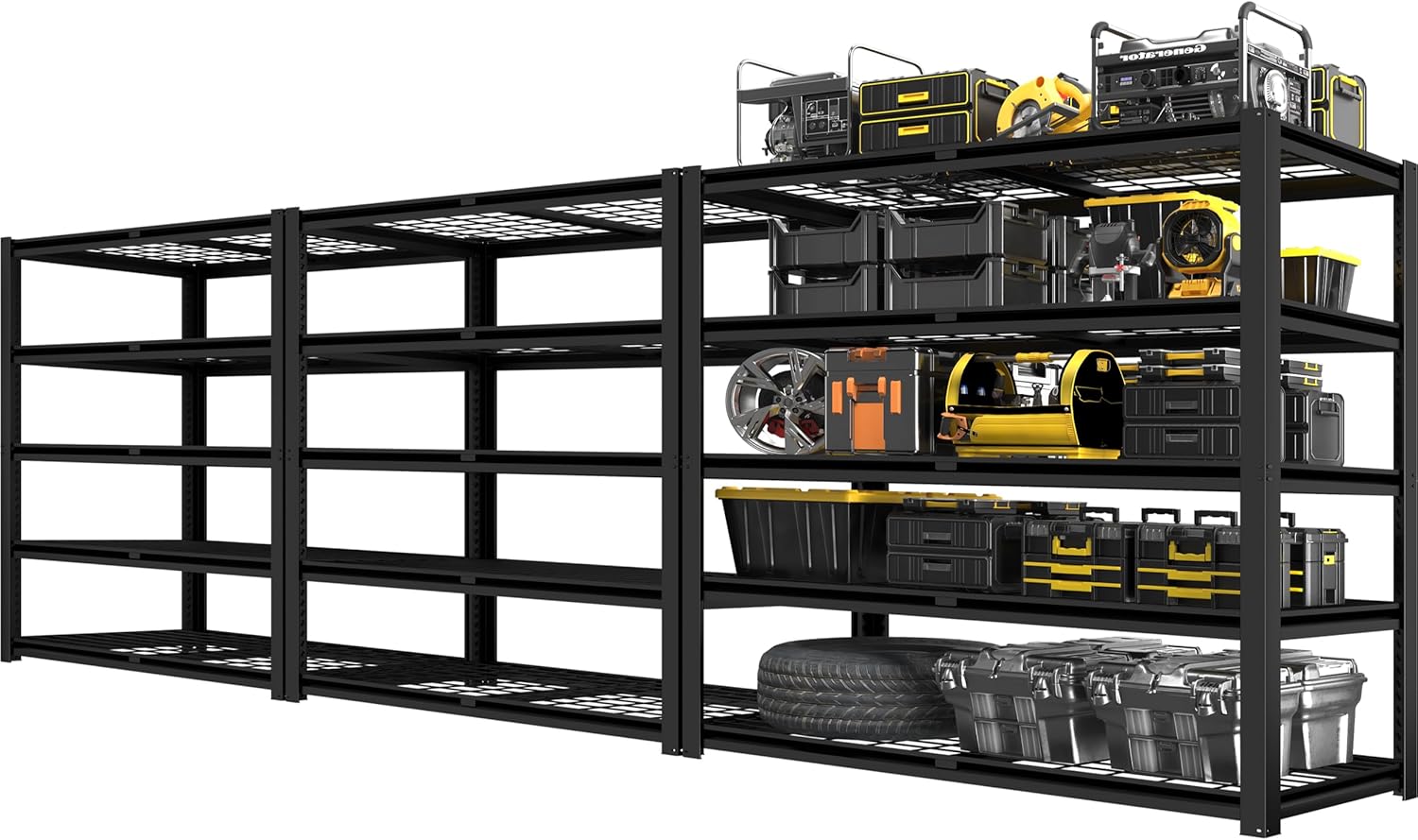- 【10 Minutes Easy Assembly】The industrial shelving adopts a bolt-free interlocking design and can be quickly assembled in just 10 minutes. It comes with a rubber mallet and gloves to make the installation process simple and efficient. Tips: Evenly distribute the items on each shelf to ensure the stability and load-bearing capacity of the garage shelves