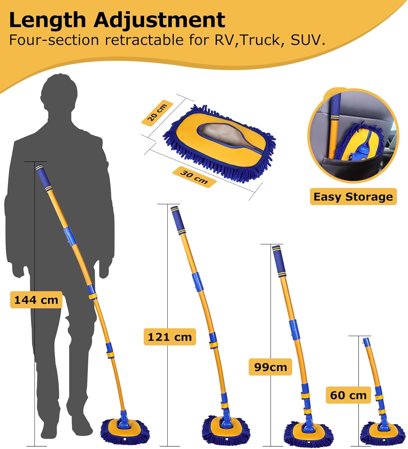 anngrowy 56.7" Car Wash Brush Mop Kit Mitt Sponge with Long Handle Car Cleaning Supplies Kit Tools Car Washing Duster Exterior Scratch Free, Chenille Replacement Head Extension Pole