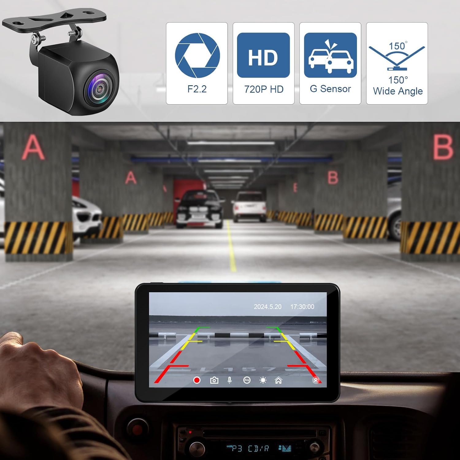 - 【HD Reversing Camera】We have equipped the device with a high-definition reversing camera that supports 720P high-definition images. It has a 160-degree ultra-wide viewing angle and is equipped with 12 LEDs, giving you a very clear and bright view even at night.