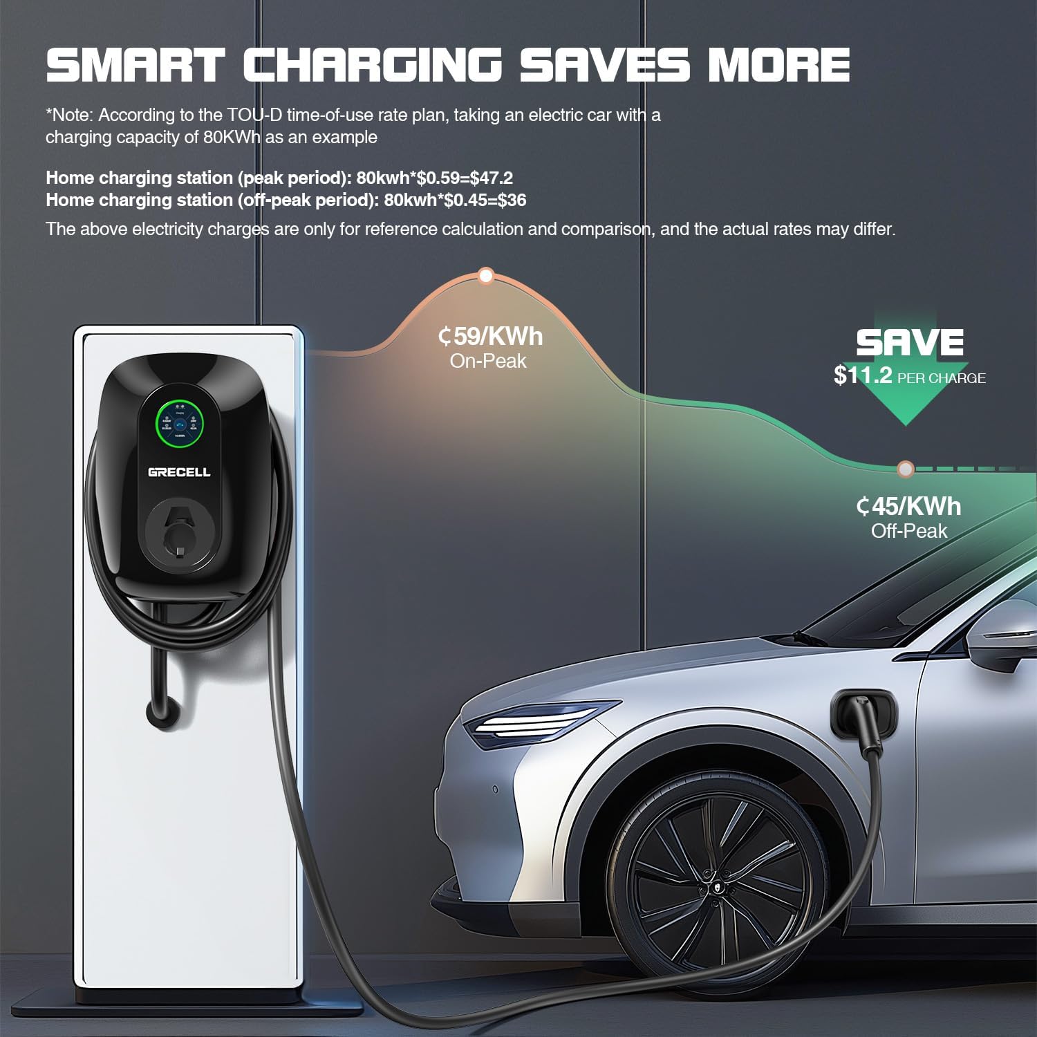 - 【Level 2 EV Wall Charger】GRECELL Level 2 Wall Charger is designed to make EV charging faster and more efficient. Extra-long 25FT charging cord fits in most garages and driveways, giving you more freedom to charge your car at home or outdoors