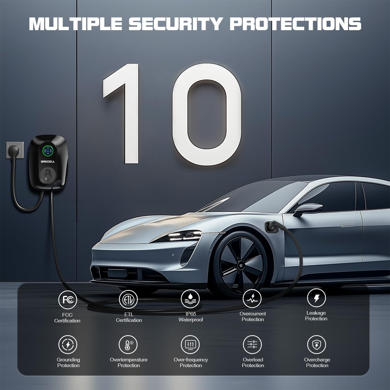 - 【Fast Charging & Adjustable Current】11kW up to 48A charging speeds up to 41 miles/hour. This electric car charger charges 9 times faster than a 110V outlet. You can charge confidently even in the coldest temperatures (-22℉). (plug-and-play charging with a maximum current of 40A, "Smart Life" adjustable to a maximum of 48A)
