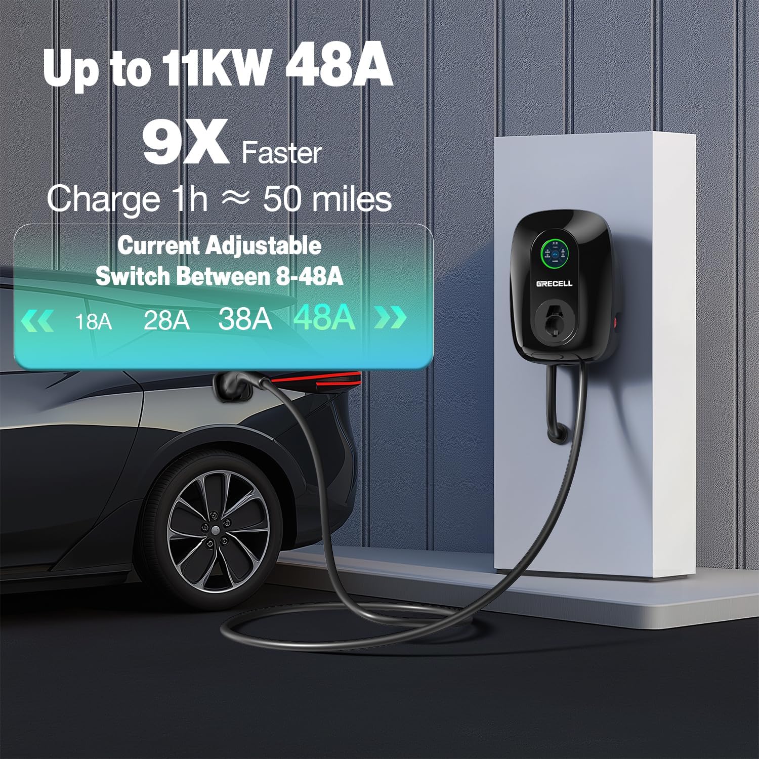 GRECELL Level 2 EV Wall Charger, ETL Certified 48A 11KW 240V J1772 Charger Bluetooth & WiFi Enabled, Electric Car Fast Wall Charging Station, Electric Car Charger with 25FT Cable and NEMA 14-50 Plug