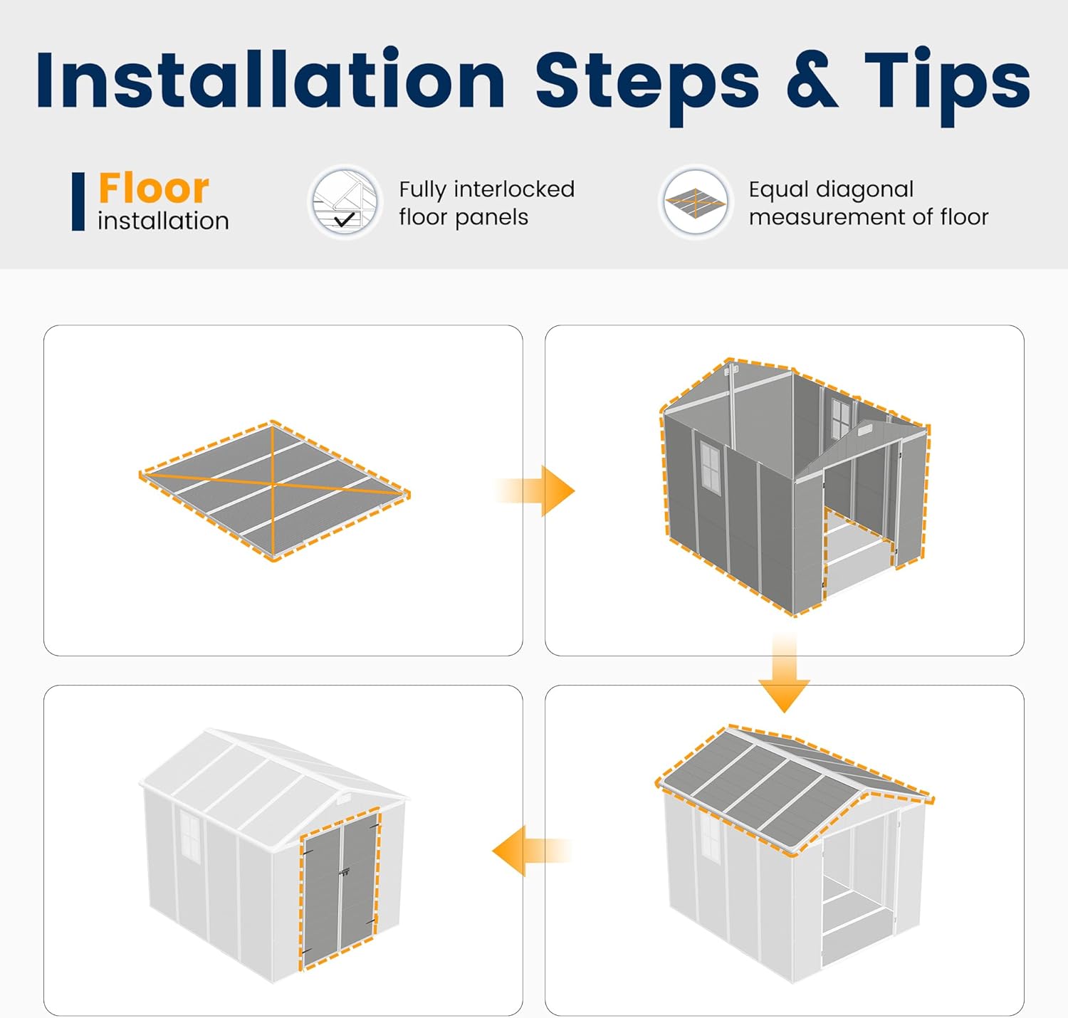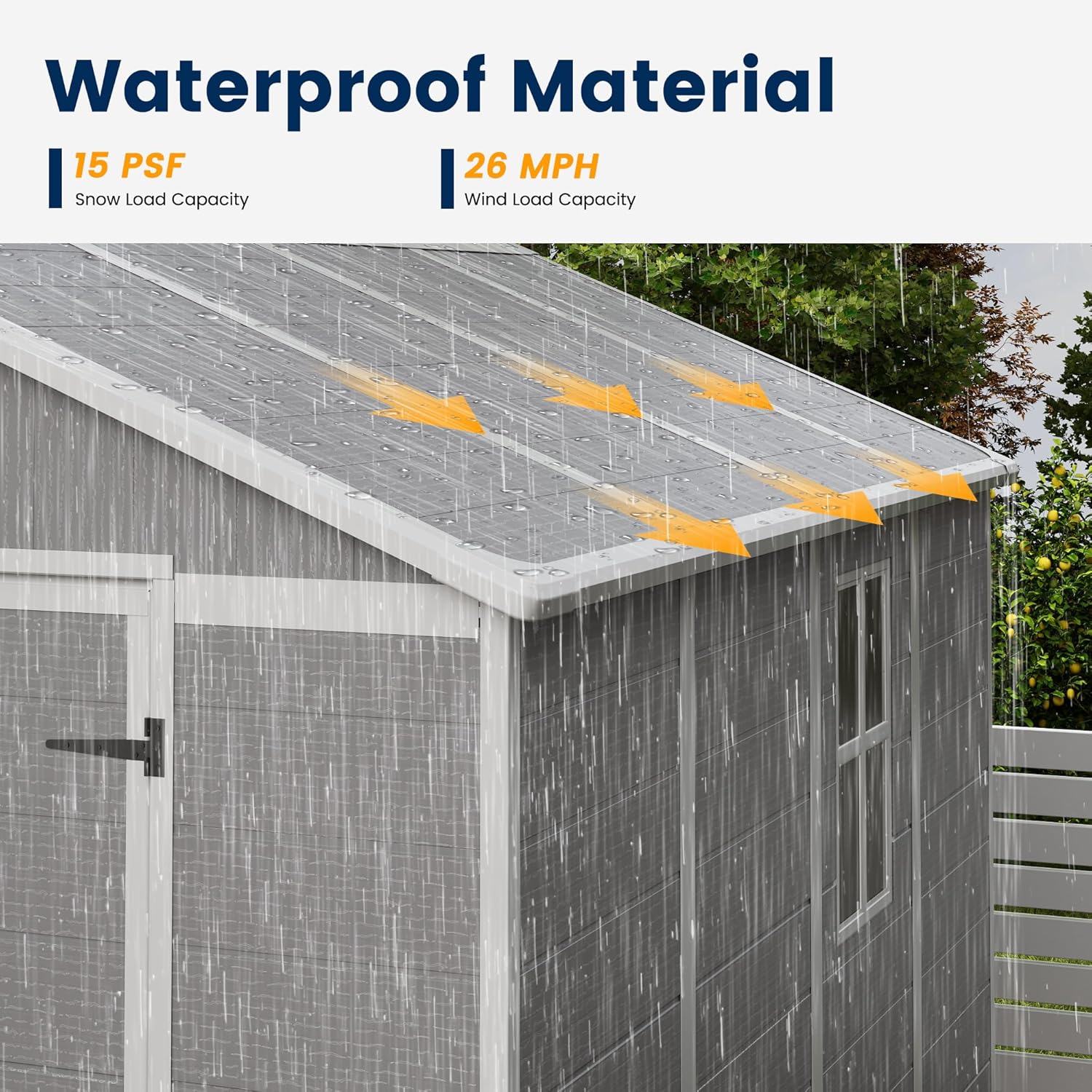 - HIGH-QUALITY MATERIAL: This outdoor storage shed is made of 12mm high-quality polypropylene resin plastic. Our resin storage shed has good characteristics such as recyclability, corrosion resistance, waterproofing, and rust prevention