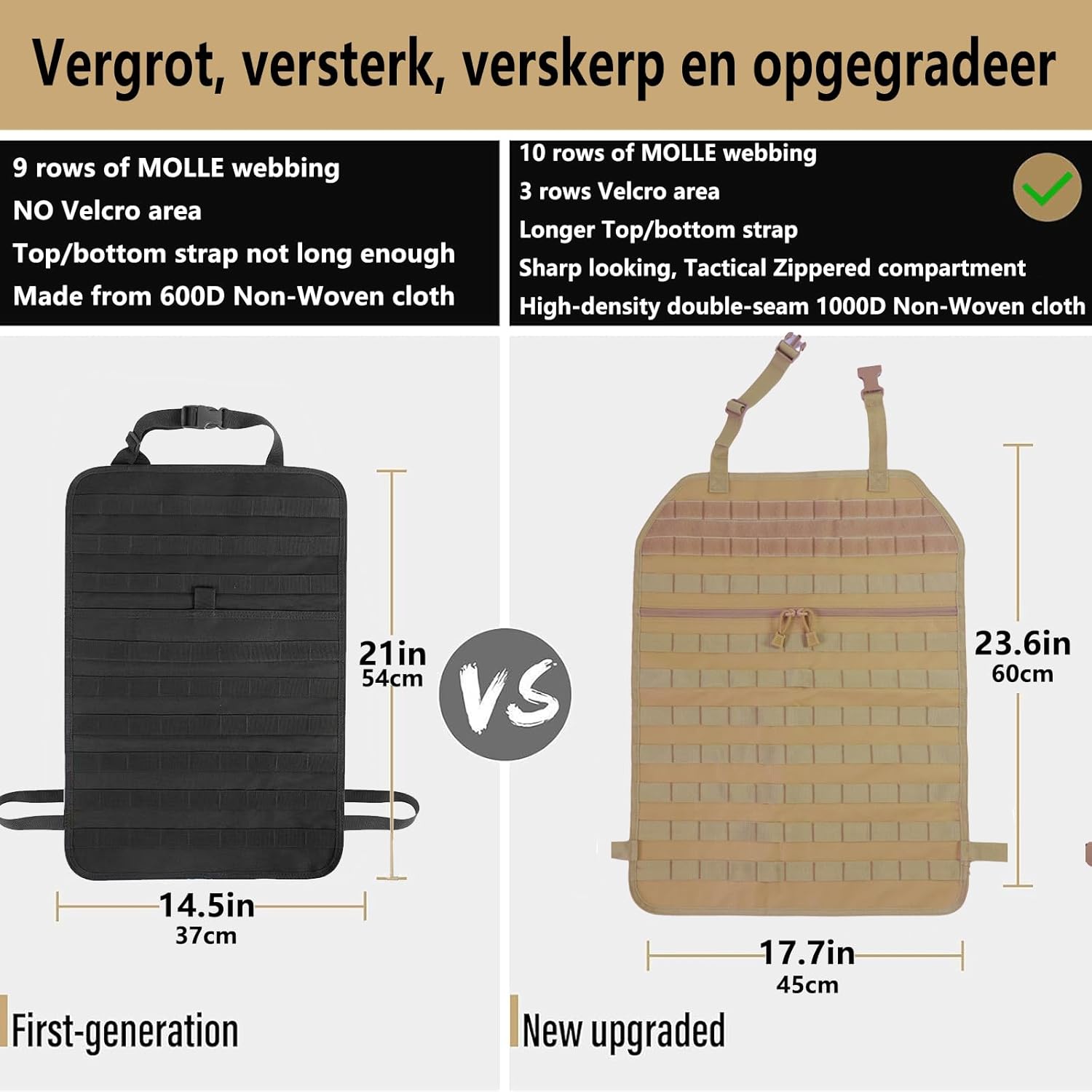 - 🚗 Multifunctional Storage - Design with 5 Molle bags on the back to help you store tactical gear & personal items and save space. Difference sizes of Molle bags help you classify your items so easily.you can set the Tactical Seat Back Organizer according to your own habits and need.
