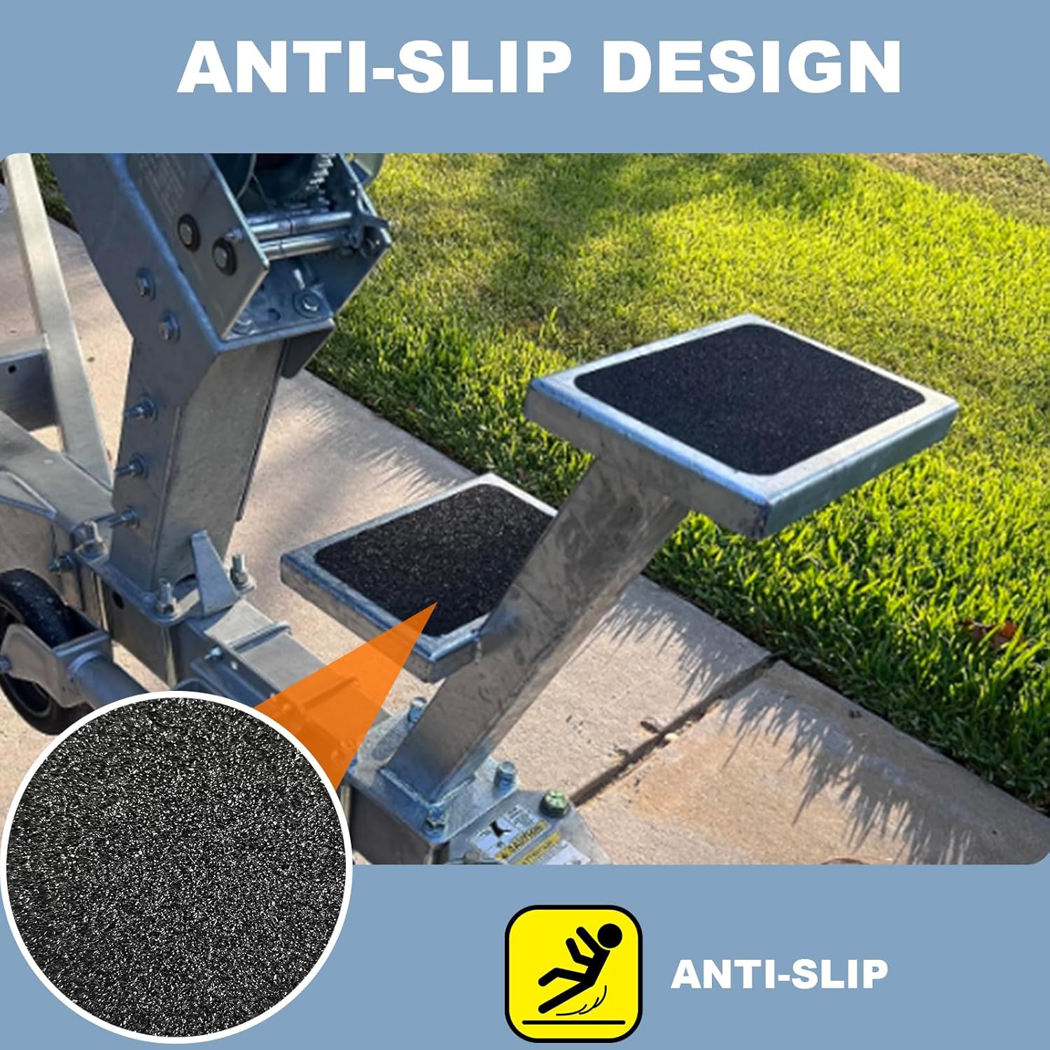 - High Quality: The trailer step is made of heavy duty steel with galvanized coat, which is resistant to rust and corrosion.