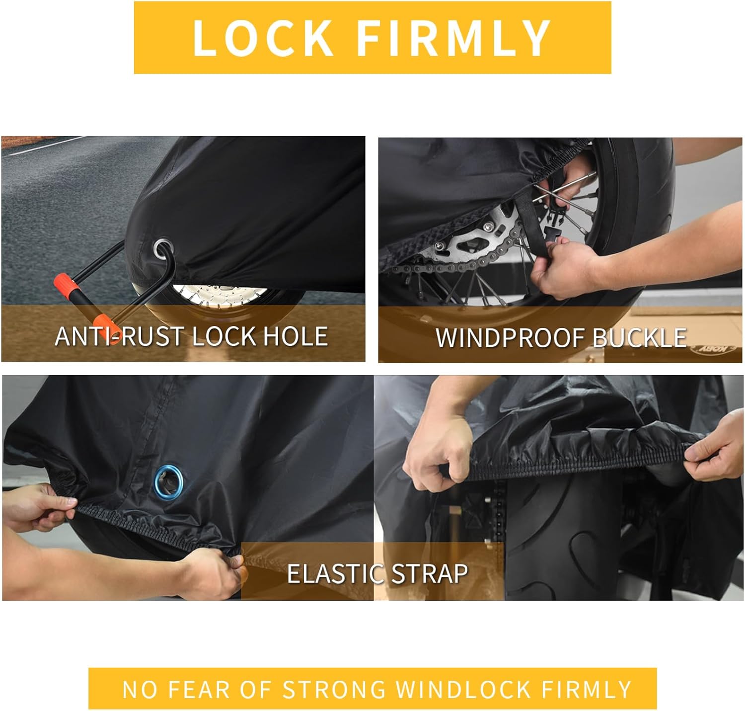 - [Simple to Use] The front wheel is fixed with an anti-theft lock, and the rear wheel is directly fixed with a buckle. Remains secure on the motorcycle after windy weather