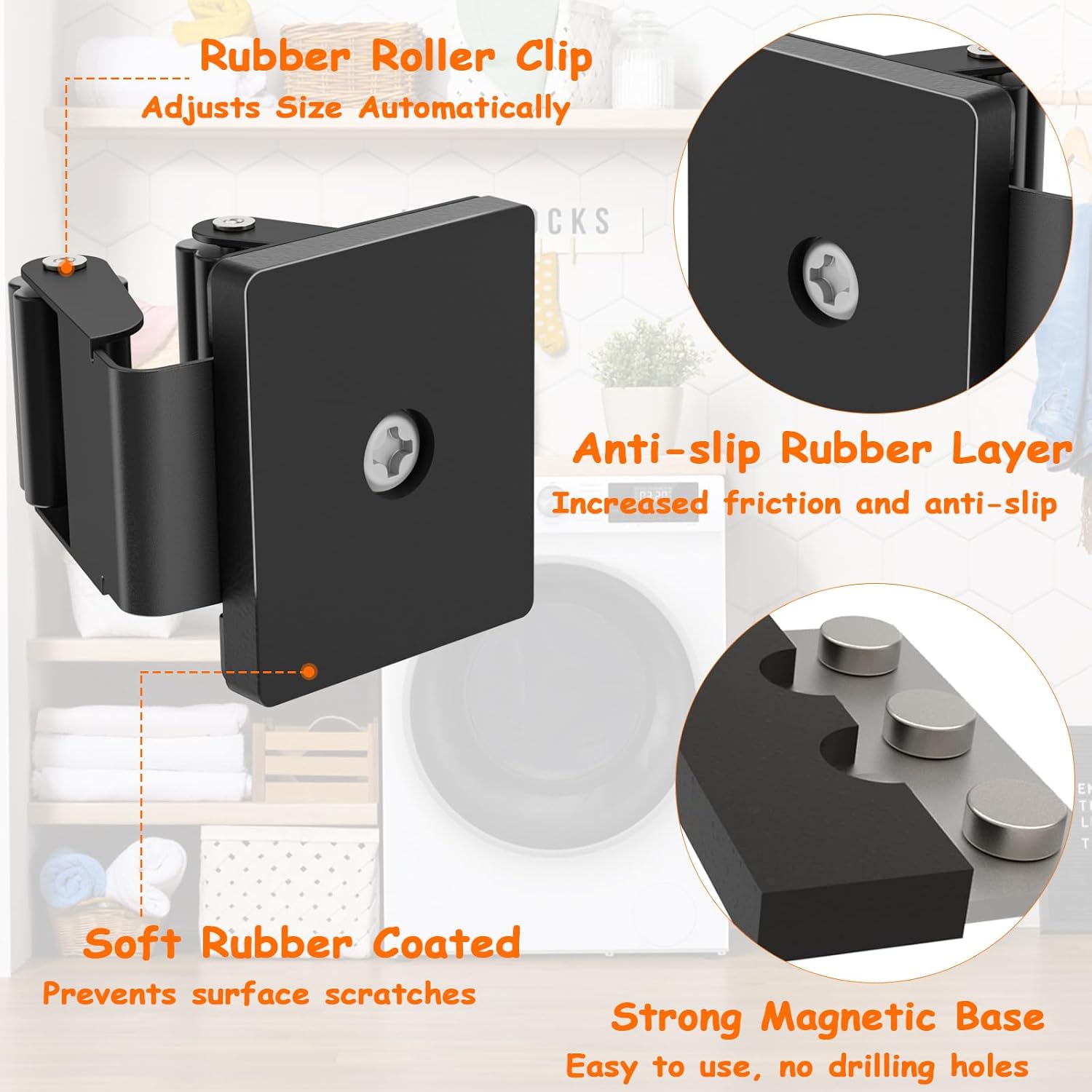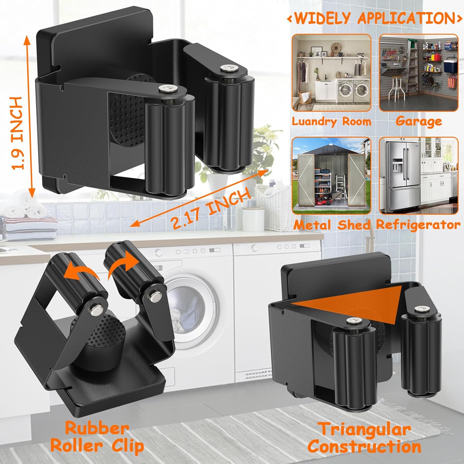 - Strong Magnetic Broom Holder: The mop holder designed with a triangular construction and silicone petal shaped rollers to provide a firm grip. Automatically adjusts width to fit handle size and grips handles tightly