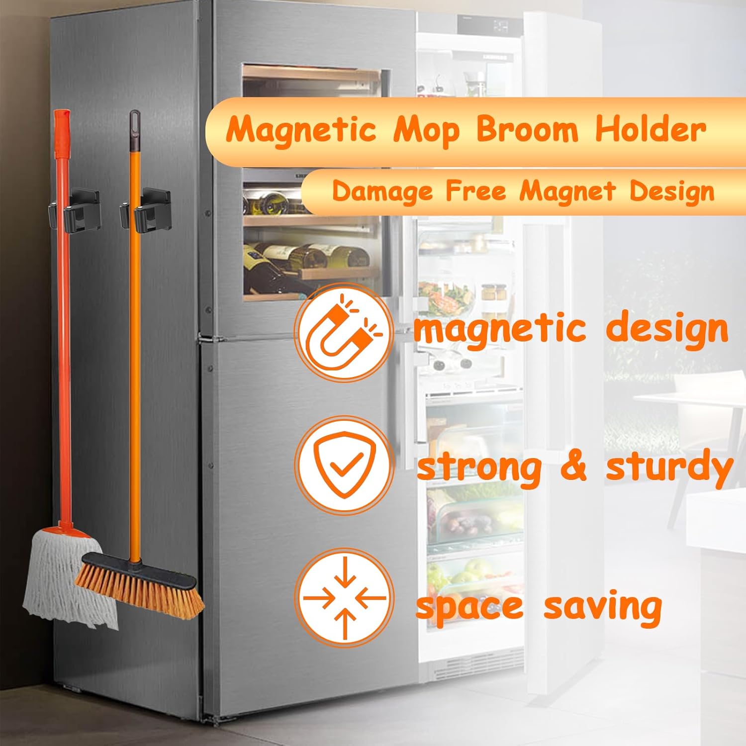 4 Pack Strong Magnetic Mop Broom Holder, Heavy Duty Magnetic Broom Mop Hanger for Cleaning Tools, Wall Mounted Mop Broom Holder for Laundry Garage Kitchen Workshops Shed