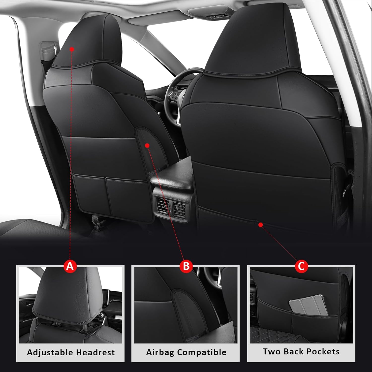 - 【Airbag-Safe & Functional】Seat cover for toyota rav4 Engineered with precision-cut perforations for side airbag deployment. Driver-side includes bonus storage pocket for phones/tolls – because convenience shouldn't compromise safety. Our rav4 seat cover has been upgraded to a detachable, and the side straps for fixing are almost hidden. The airbag has enough room to stretch and will never be blocked.