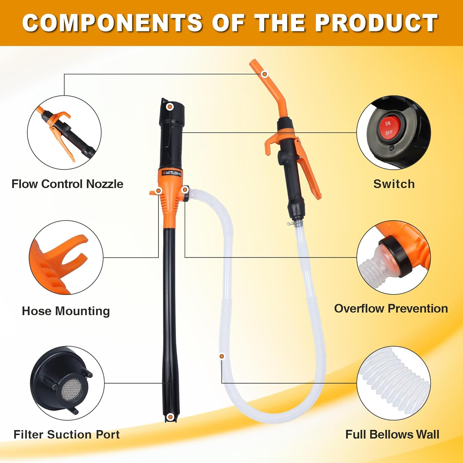 - EASY TO USE: The electric siphon pump comes with a battery adapter for use with a choice of 2 D-cell batteries or 6 AA batteries (batteries not included). 2 AA batteries can also be used in an emergency