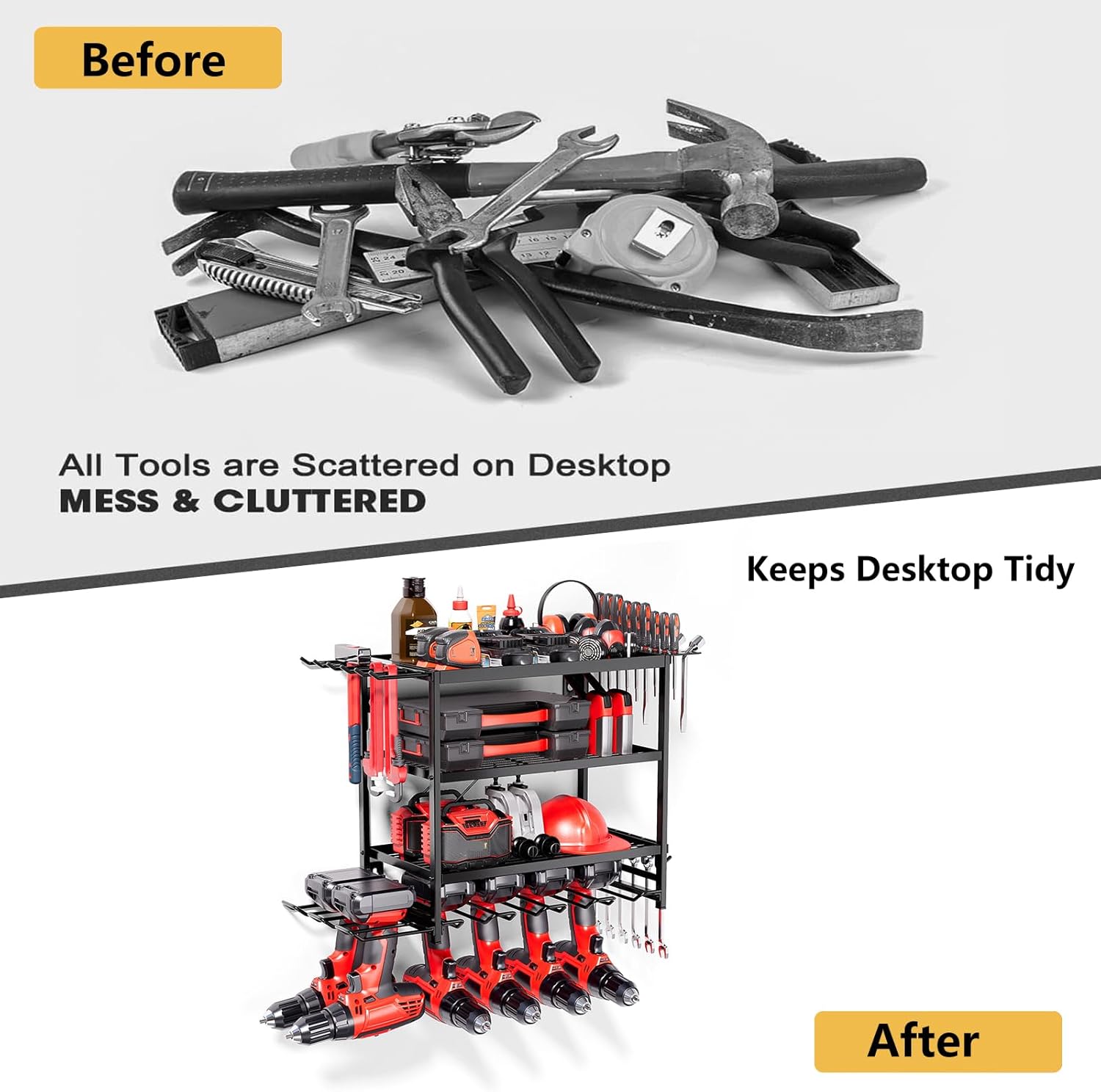 - Easy Installation : The installation process of the tool organizer is very easy, you just need to connect the gauge steel wire and plating with screws and hang it on the wall. We offer professional manuals and accessories. You only need a few minutes to assemble the perfect power tool rack for the workroom