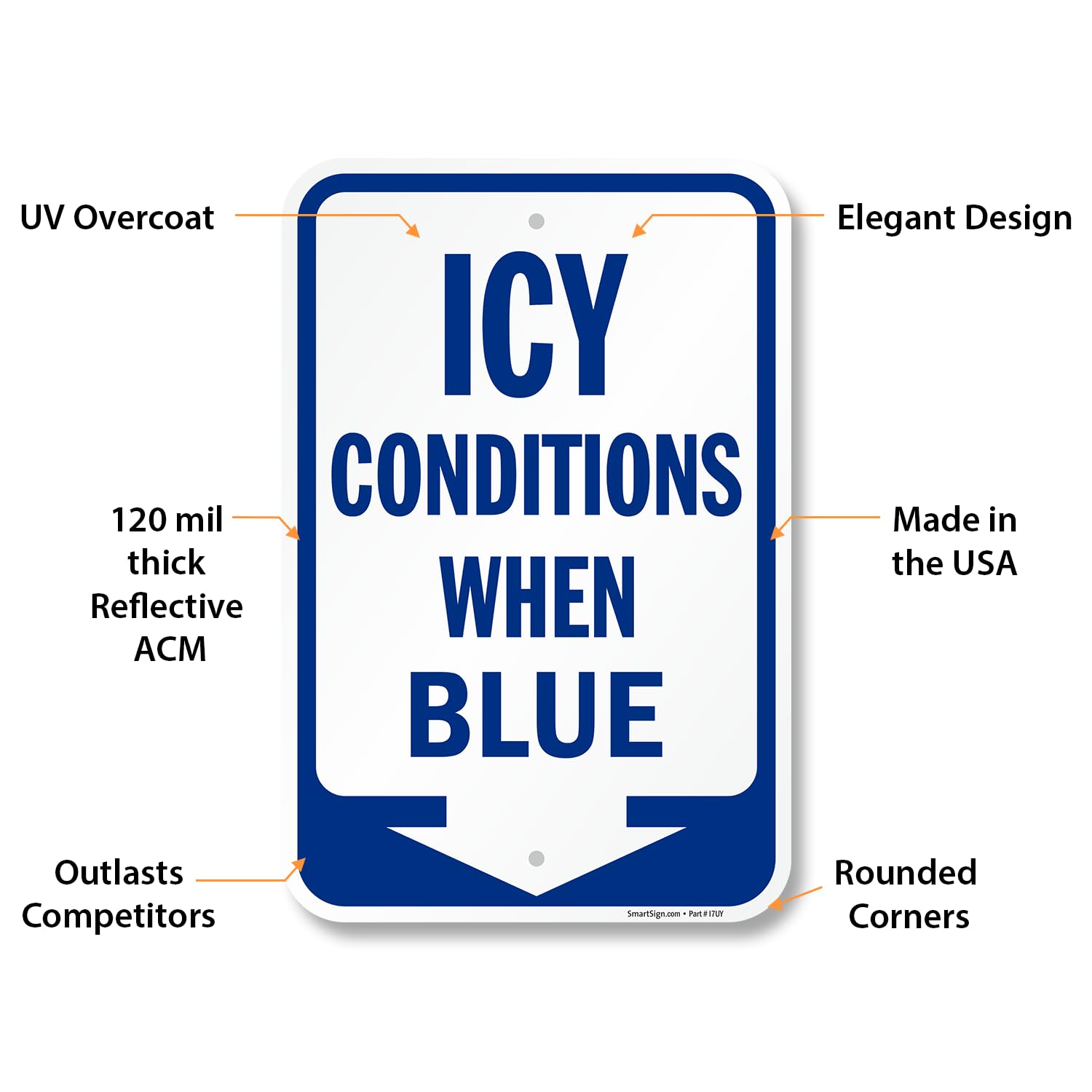 - SMARTSIGN BASICS. Icy Conditions When Blue Signs last up to 7 years outside, these signs have prismatic Engineer Grade film mounted on 120 mil thick ACM (Aluminum Composite Material) which has a thick aluminum outer layer and a durable plastic core.