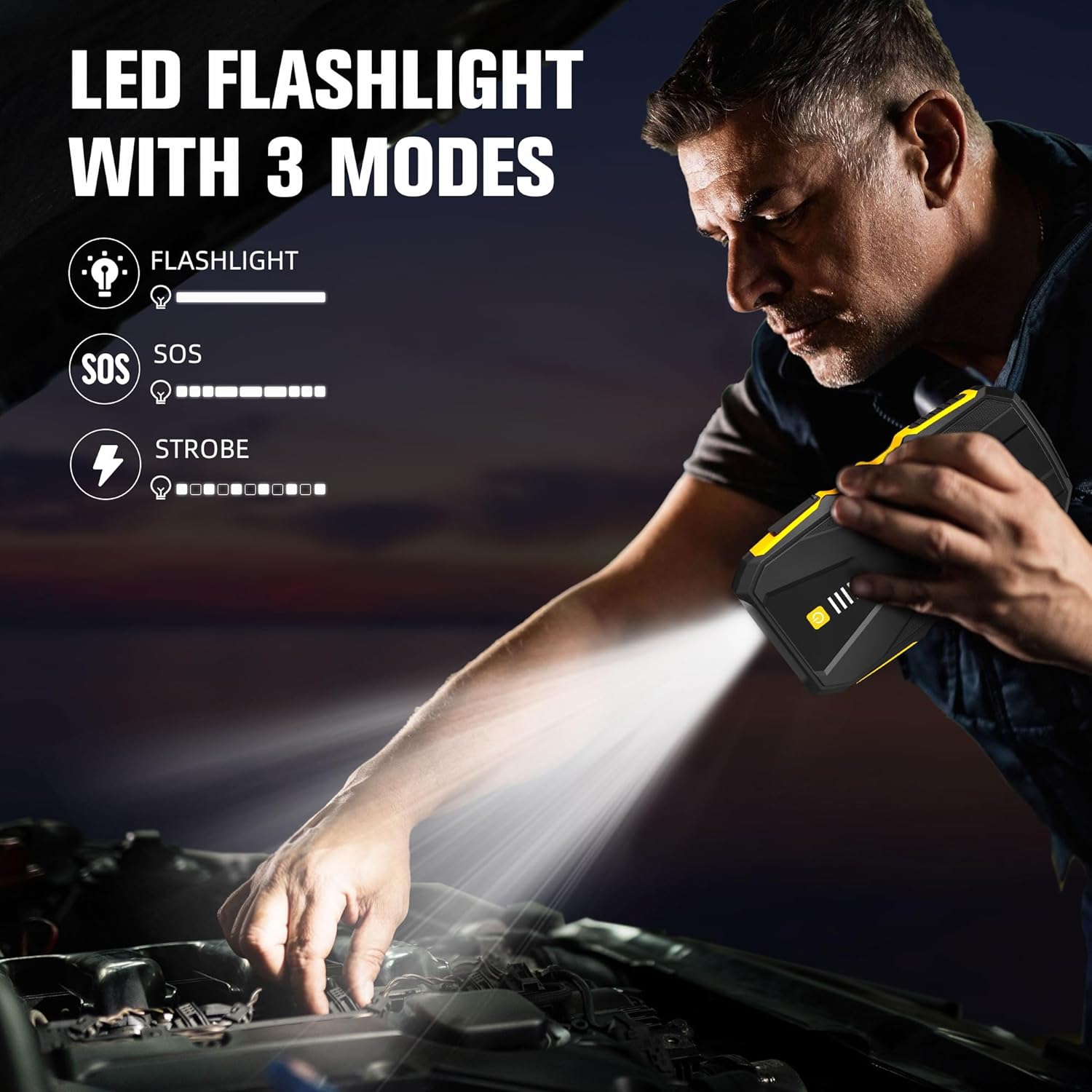 - 【ADVANCED PROTECTION SYSTEM】The jump box for car battery adopts an efficient battery management system (BMS), with spark protection, reverse polarity protection, low-temperature protection, high-temperature protection, overload protection, and more than 8 multiple protections, which can quickly and safely start a dead car battery even in extreme temperatures (-4°F~140°F)