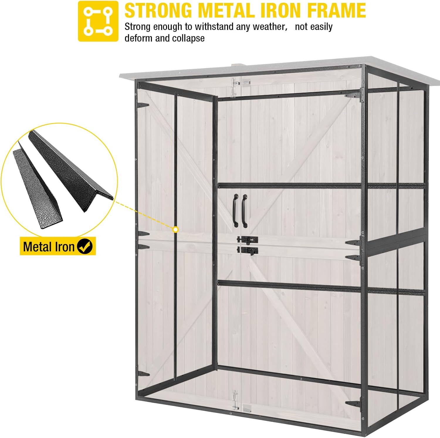 - Stable Construction: Reinforced with a robust metal frame, our outdoor garden shed offers unparalleled stability, ensuring it withstands various weather conditions for long lasting durability