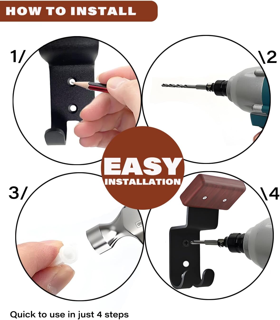 2 Pack Motorcycle Helmet Holder with Solid Wood and Strong Steel Design, Wall Mount Hanger for Motorcycle Bike Outerwear Sports Gear