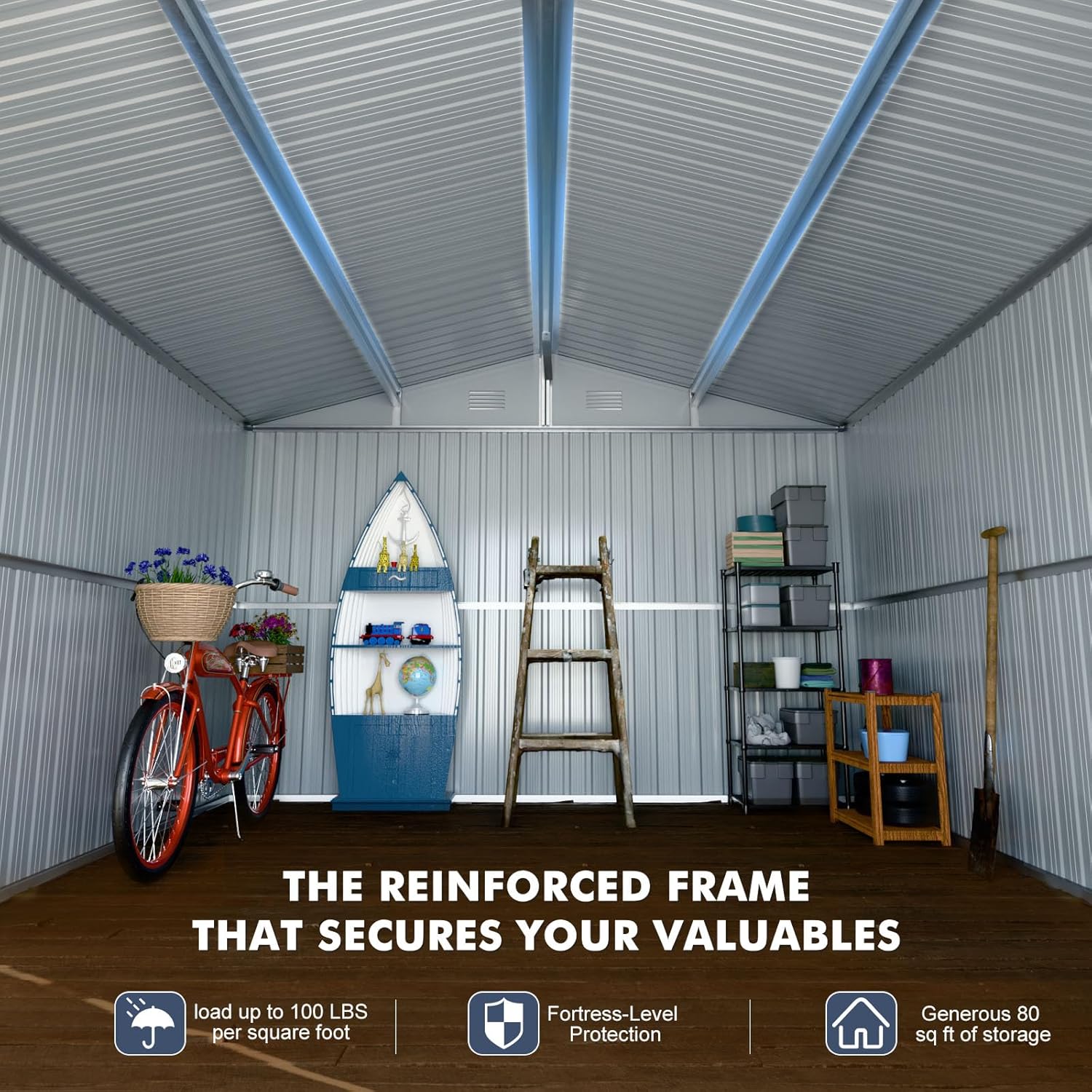 Metal Shed 8x10x6 FT - Steel Tool Storage with Sliding Door and Air Vents - Outdoor Bike Shed for Garden, Backyard, Patio - Utility Storage Solution