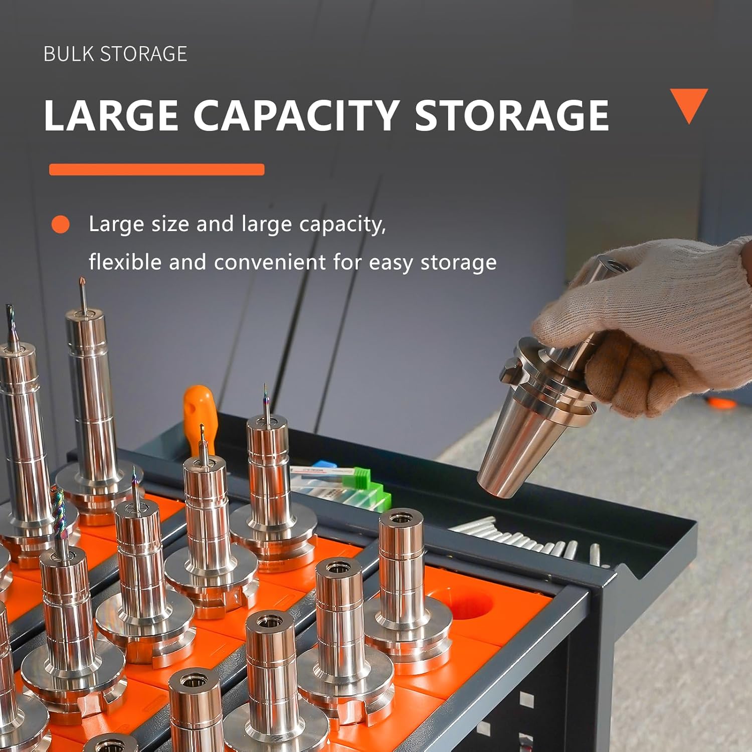 - WIDE RANGE OF APPLICATIONS: CNC tool carts with wheels are designed for easy mobility, allowing you to easily access your tools anytime, anywhere. Suitable for professional machinists, shop workers, and manufacturers, it is compatible with all types of CNC tools, significantly increasing the efficiency of workshops, factories, and manufacturing processes. Tool holder keeper can effectively protect the service life of your valuable tools.