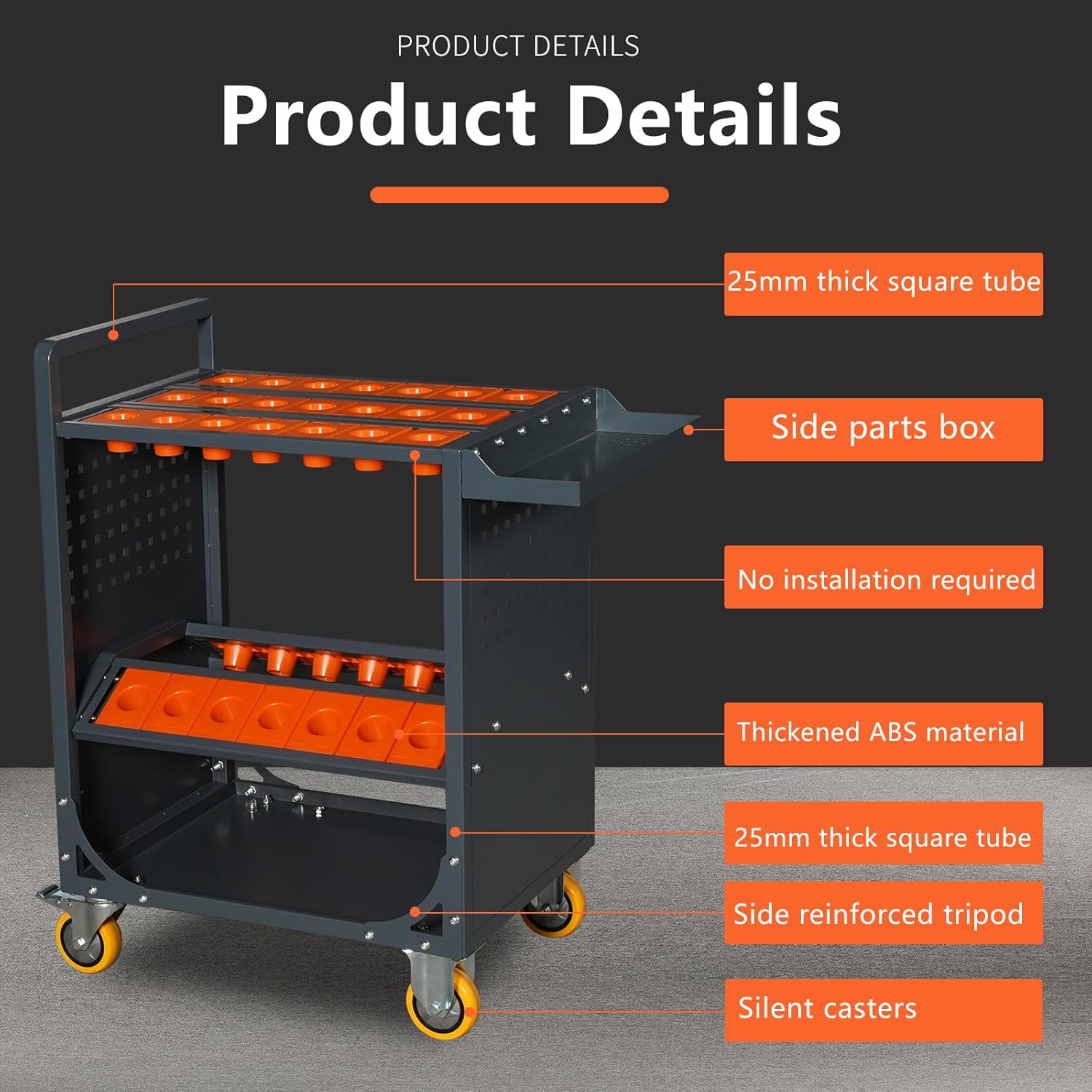 - HIGHER QUALITY: LYREIGN grey classic CNC tool cart adopts electrostatic spraying technology, and has been pickled and phosphated. The tool holder not only looks high-end and elegant, but is also rust-resistant and wear-resistant. The CNC tool cover is made of new material ABS, which has good cushioning and reduces the impact between the handle and the sleeve. The service life of the tool cart will be greatly improved.