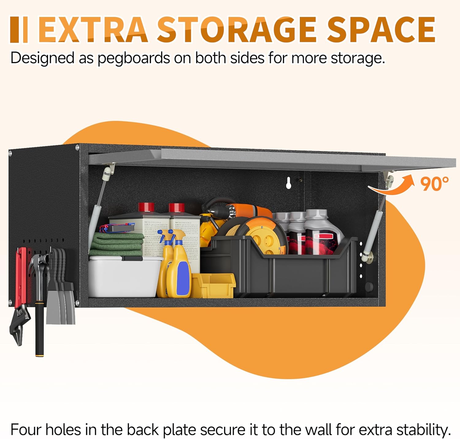- 【Extra Storage Space】Designed for more efficient storage, this wall mounted steel cabinet has innovatively made two side panels into pegboards for more storage space and more efficient organization than other cabinets. Provides you with a better solution without compromising other features.