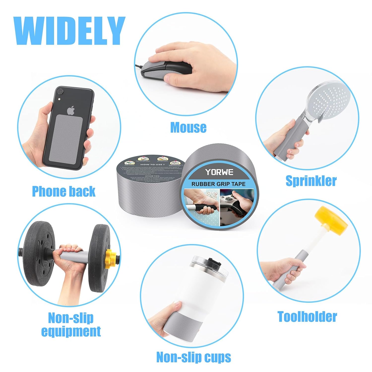 - 4.WIDELY: Versatile and practical, our grip tape can be used on a wide range of surfaces where you need to increase grip. From handrails and bathroom handles to mice, gaming controllers, spoon handles, washing machine lids, phone backs, rocking chair bottoms, cameras, ovens, and more.
