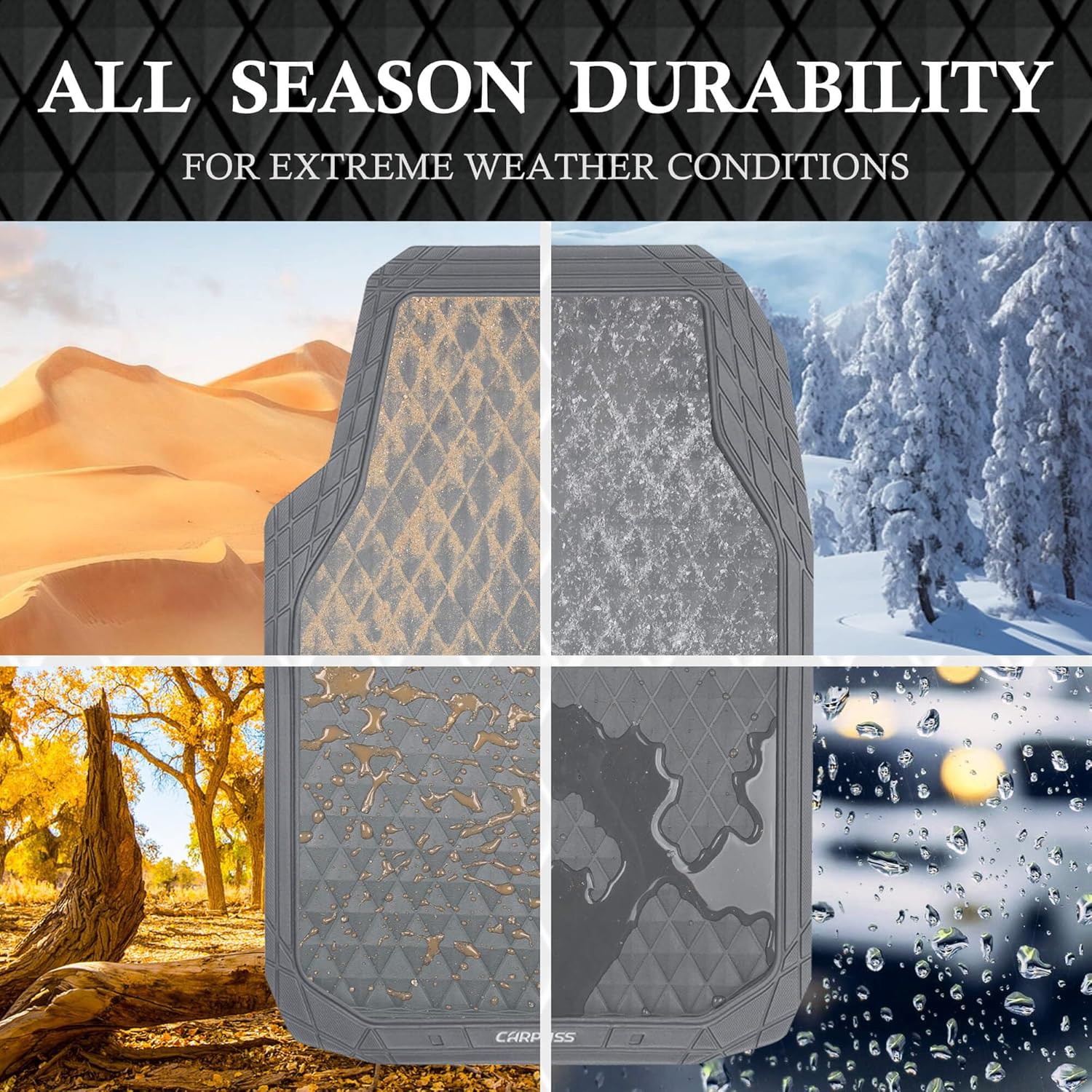- ALL WEATHER PROTECTION - The CAR PASS 3D Cyber-Rhombus heavy-duty rubber car floor mats use for all season. Protect your truck's floors from dirt and debris. Easy to clean. Deep Dish design of the car mats can prevent from holds water, snow, mud, and road salt