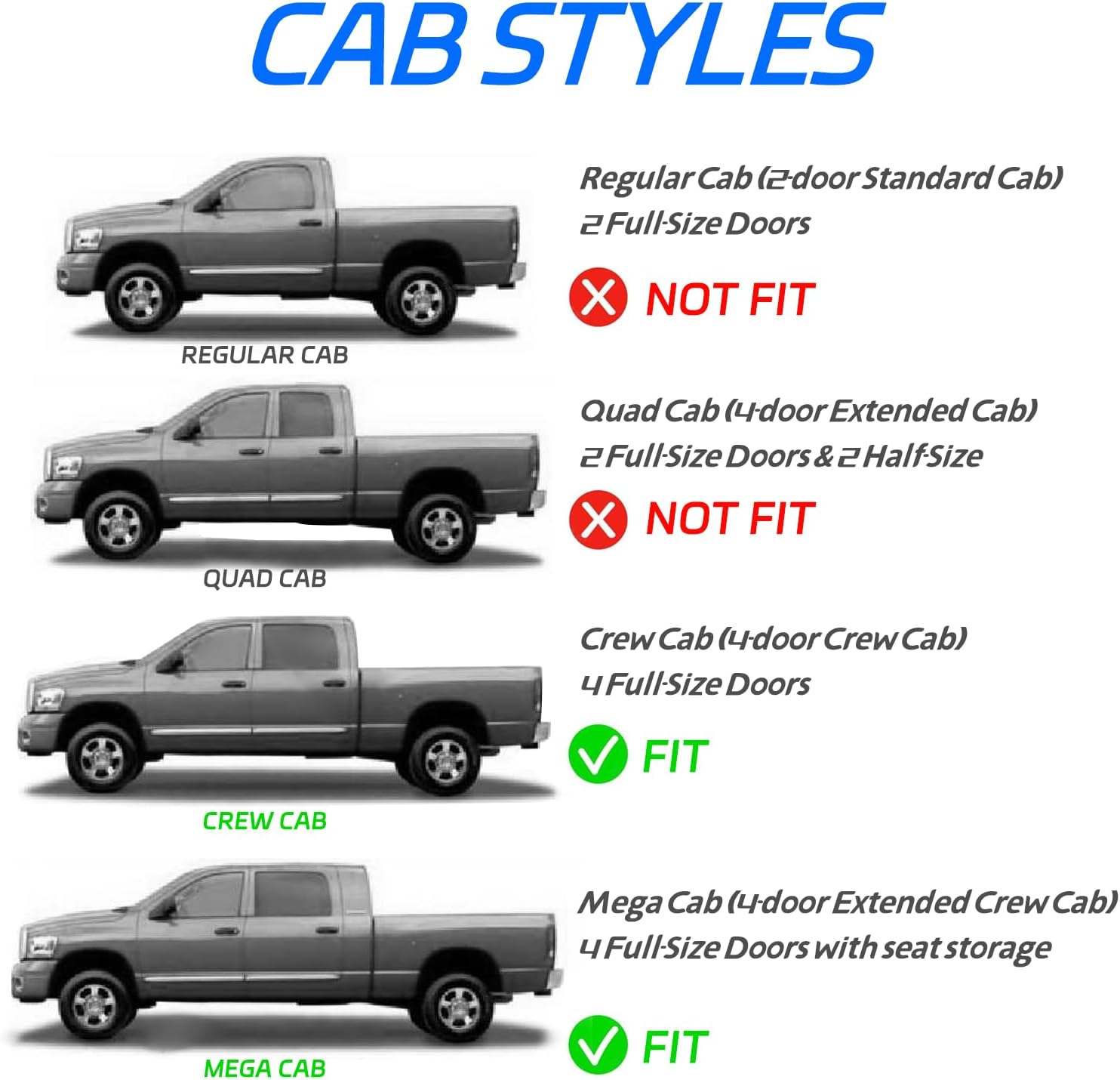 - : Vehicle Service Type fit for 2009-2018 Ram 1500 Crew Cab, 2010-2024 Ram 2500 & 3500 Mega/Crew Cab (4 FULL-SIZE Doors), 2019-2023 Ram 1500 (Classic Body Only) fit for 2009-2018 Ram 1500 Crew Cab, 2010-2024 Ram 2500 & 3500 Mega/Crew Cab (4 FULL-S… See more