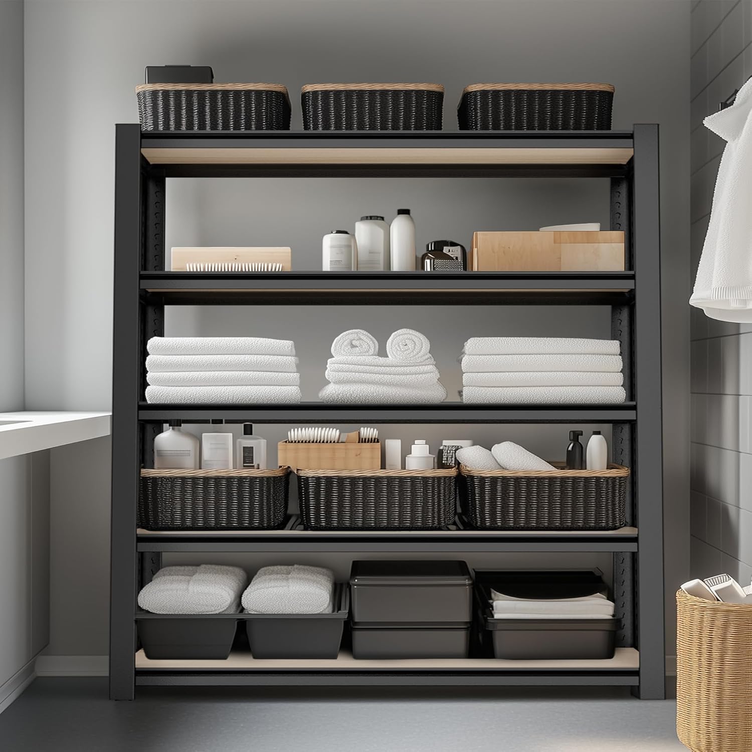 - 【Multi-Purpose Shelving Unit】Designed for versatility, thisshelvingfits garages, homes, warehouses, and offices. Whether for garage storage or general organization, it offers reliable, heavy-duty performance in any setting. The 48” extra-wide design offers ample storage space for larger items.