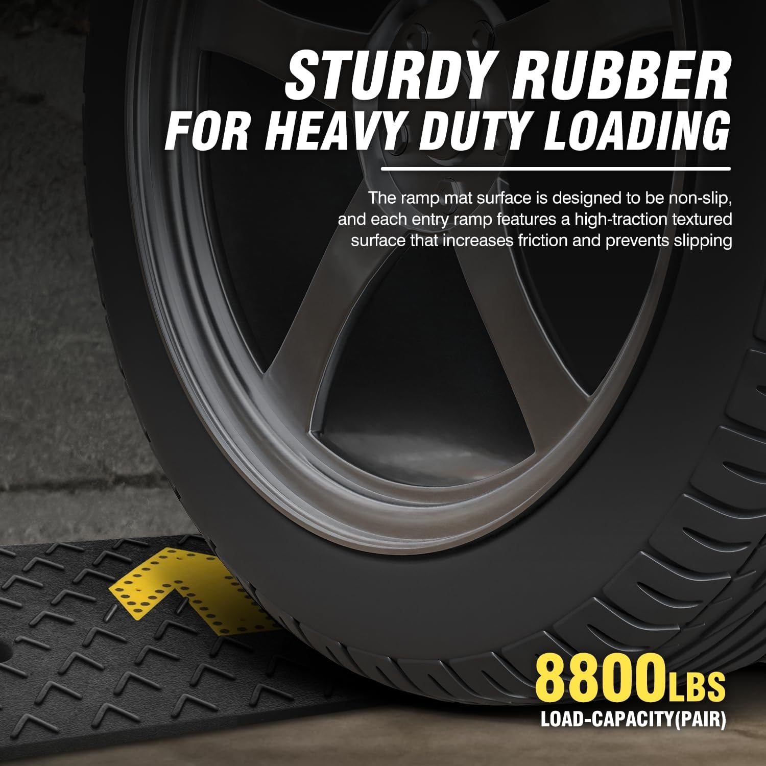 - WIDELY USED - From small to medium-sized vehicles to toy cars, It can greatly protect the safety of going up and down stairs, and are also a good choice for mobility issues; Widely used in households, warehouses, garages, etc; If you are concerned about the smell of rubber, we suggest that you can leave the wheelchair ramp outdoors for more than 1 days for ventilation.