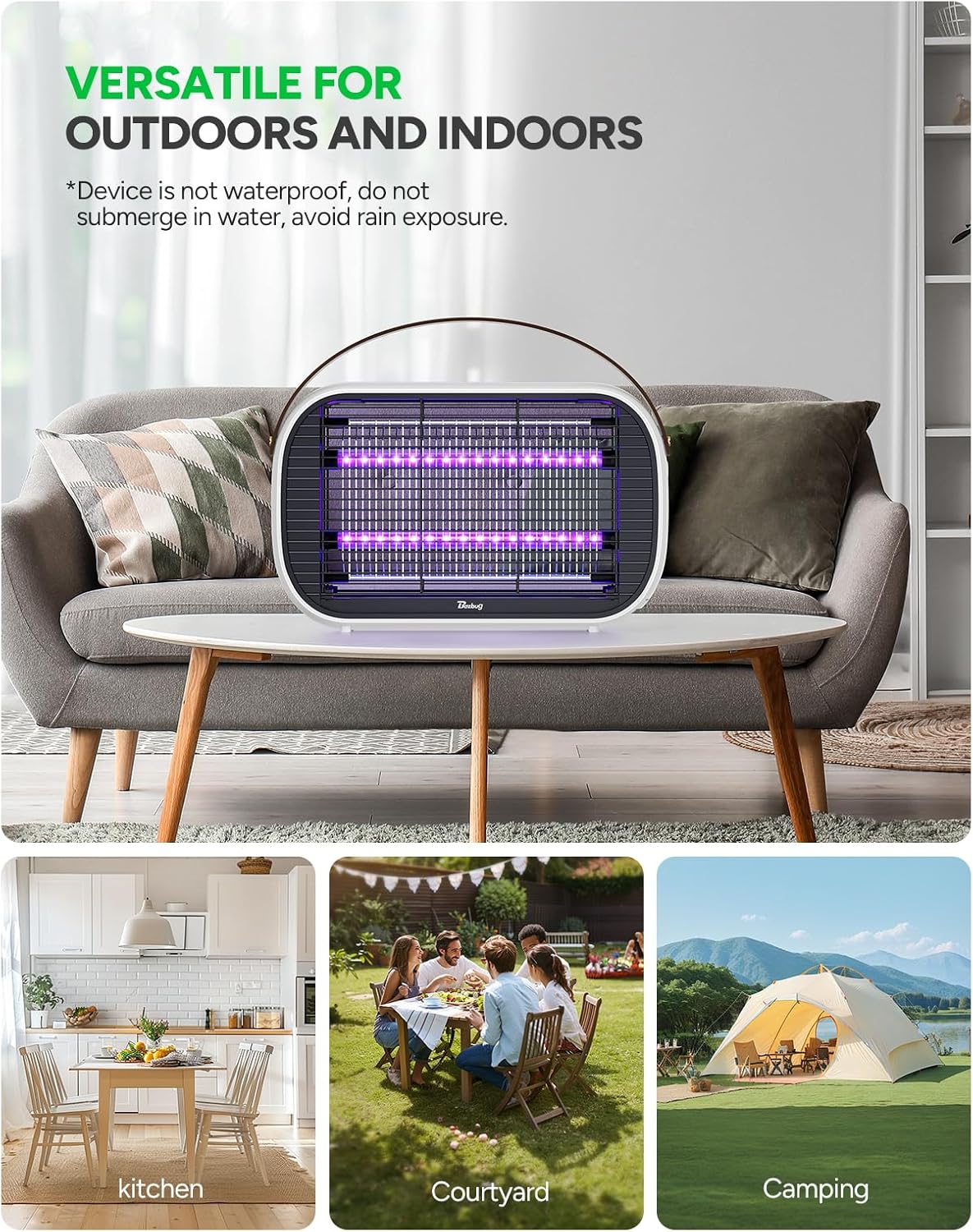 - Efficient and Safe: This electric bug zapper uses 3800V high-voltage physical electric shocks to kill bugs like mosquitoes, flies, moths, and gnats. It is equipped with a protective grill to avoid accidental contact by children and pets, making it a reliable bug-killing solution for indoor family use.