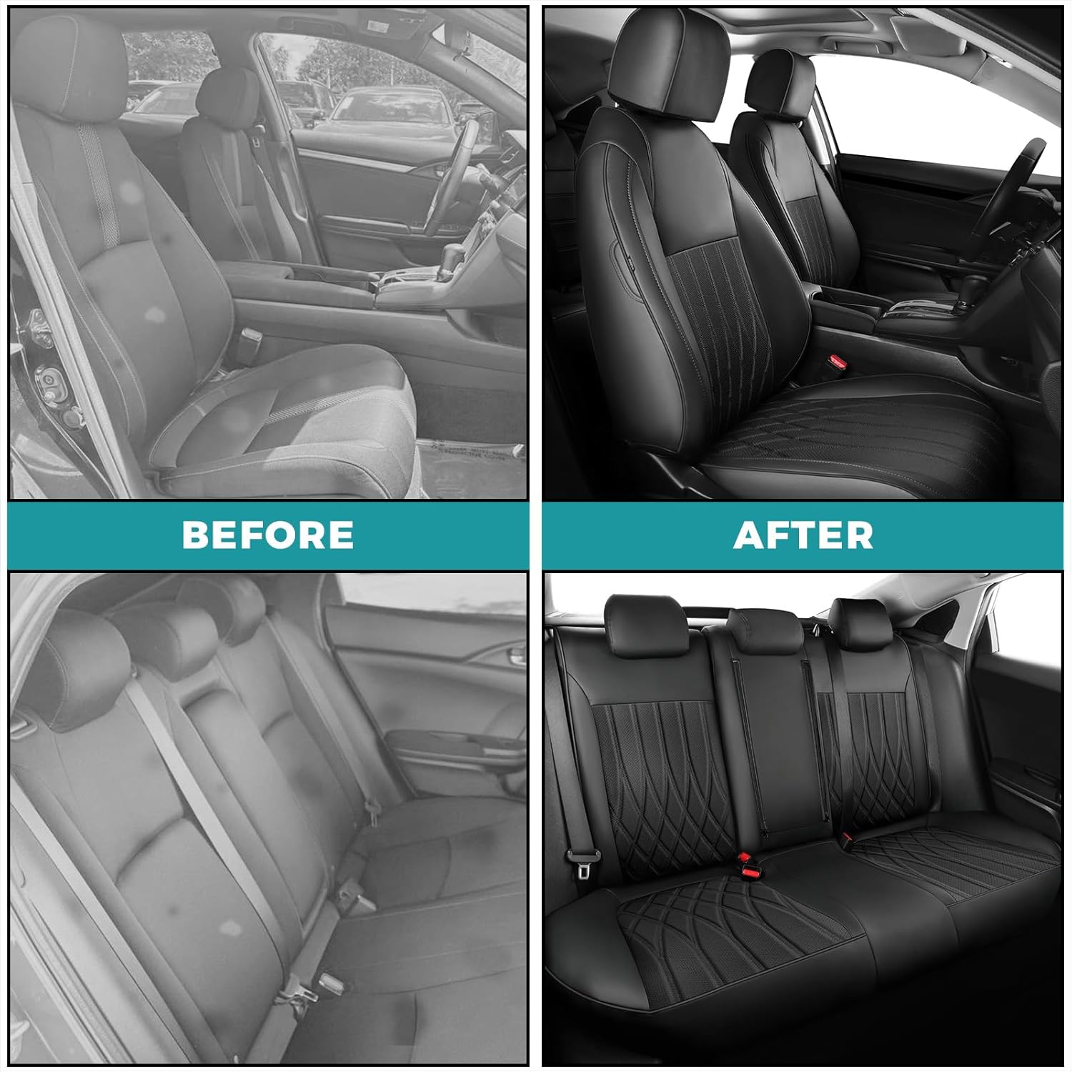 Seat Covers for Honda Civic Hatchback EX, Sport Touring, EXL 2016 2017 2018 2019 2020 2021, Faux Leather Car Seats Cover Full Set(Rear Row 40/60 Split & Folding Backrest)-Black