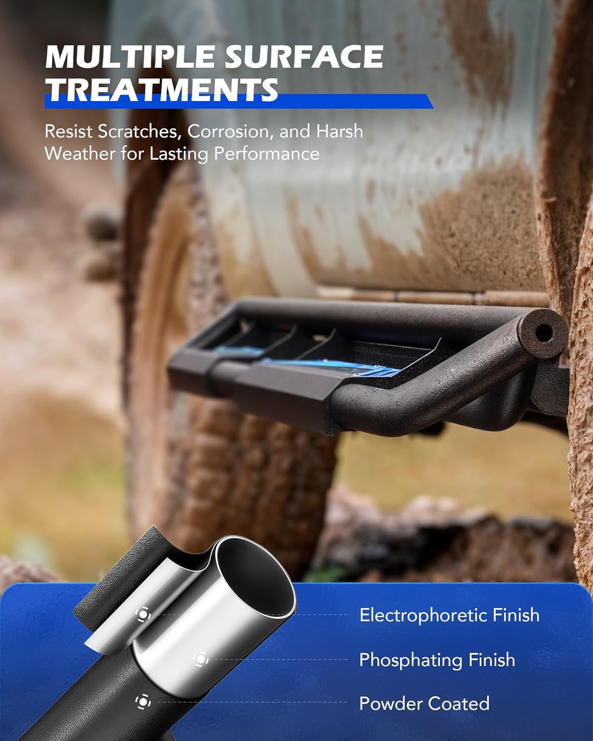 - Built to Last: Made from Q235 carbon steel and treated with phosphating, electrophoretic coating, and powder coating, these side steps offer unmatched strength while resisting corrosion and rust, keeping them sturdy and looking great for years