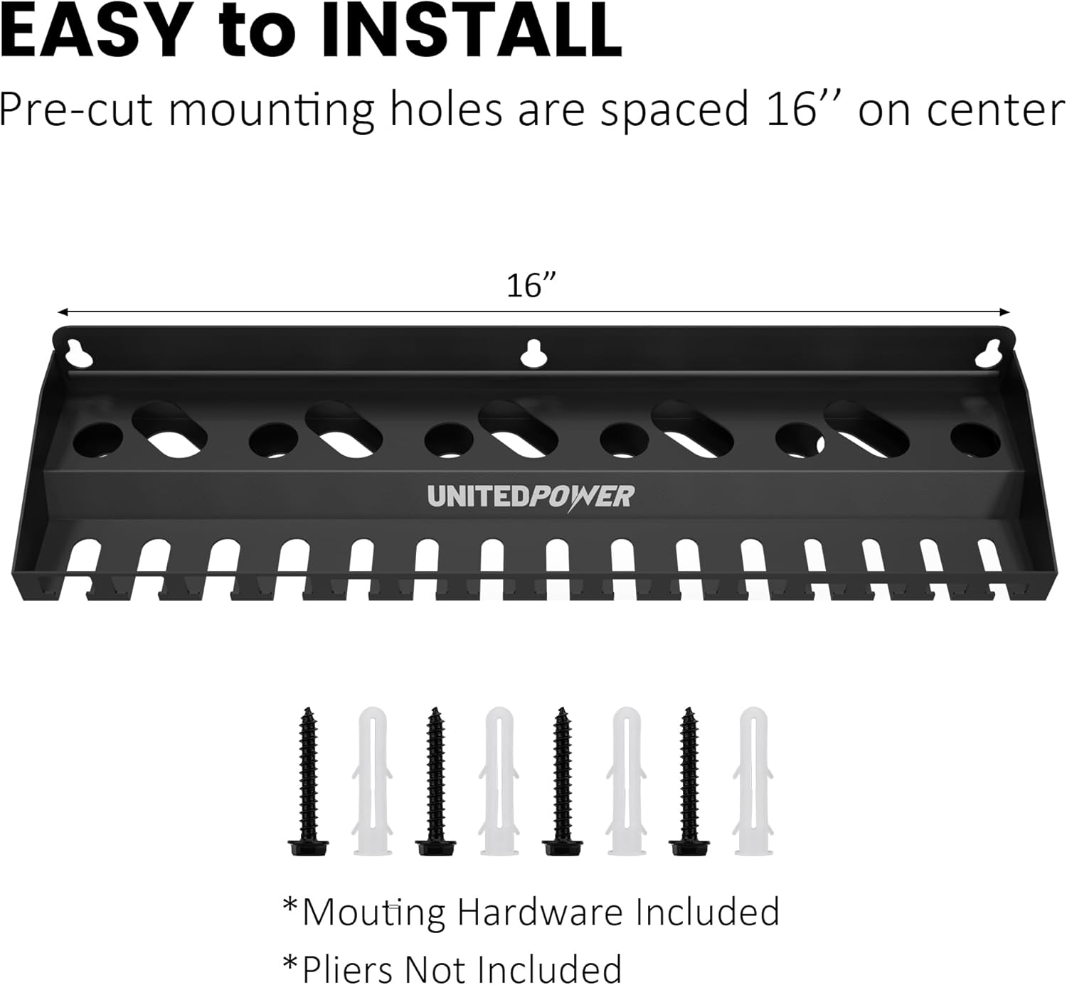 UNITEDPOWER Vise Grip Holder, Wall Mount Pliers Storage Rack Organizer for Workshop, Shed, Garage, Stores up to 15 Vises or 11 Pliers
