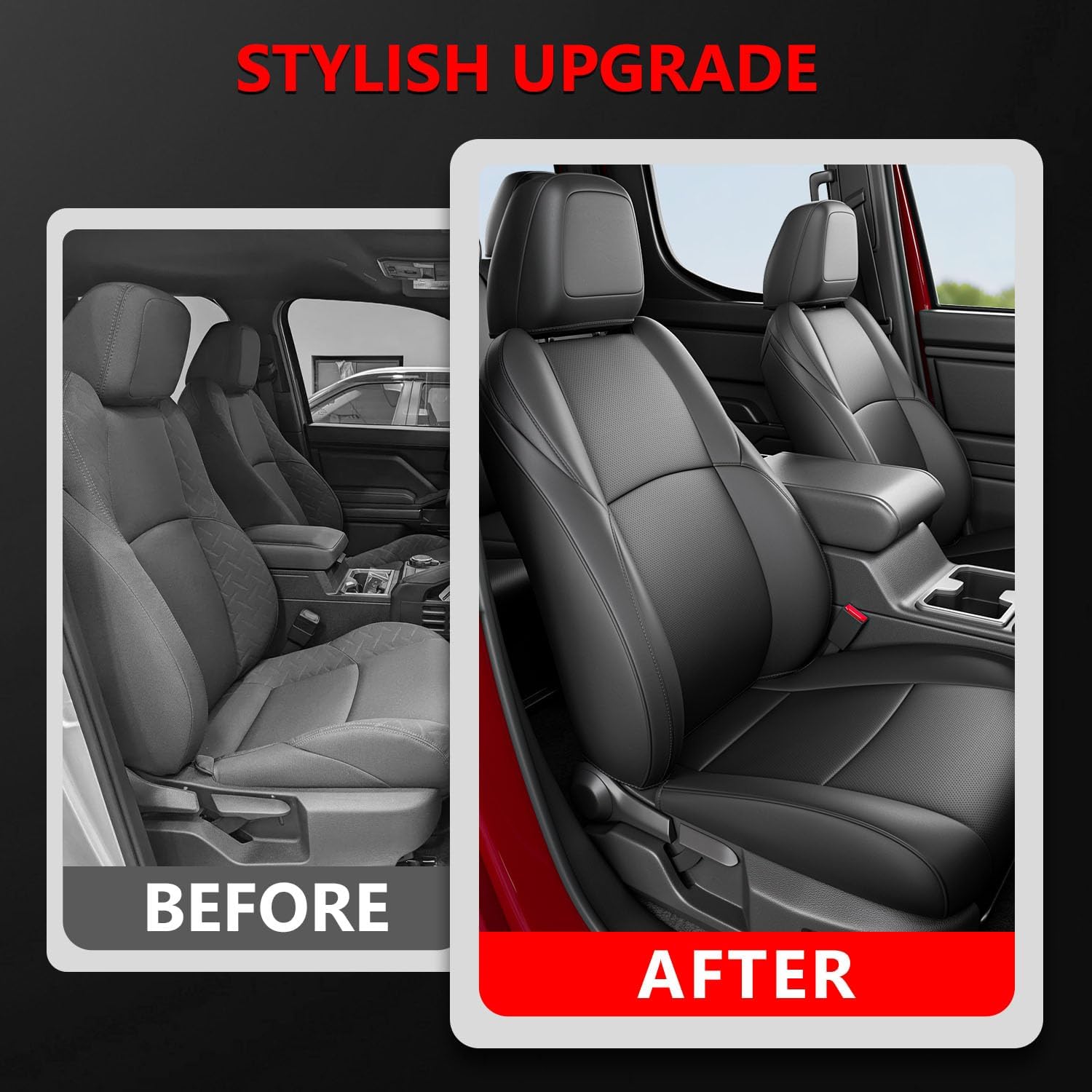 - Exclusive Fitment: Our seat covers are perfectly compatible with 2024 2025 Toyota Tacoma Double Cab SR, SR5, TRD Sport, TRD Off-Road, Limited. Our covers fit like gloves to make your car interior look even more luxurious. Please confirm the model year before purchasing.