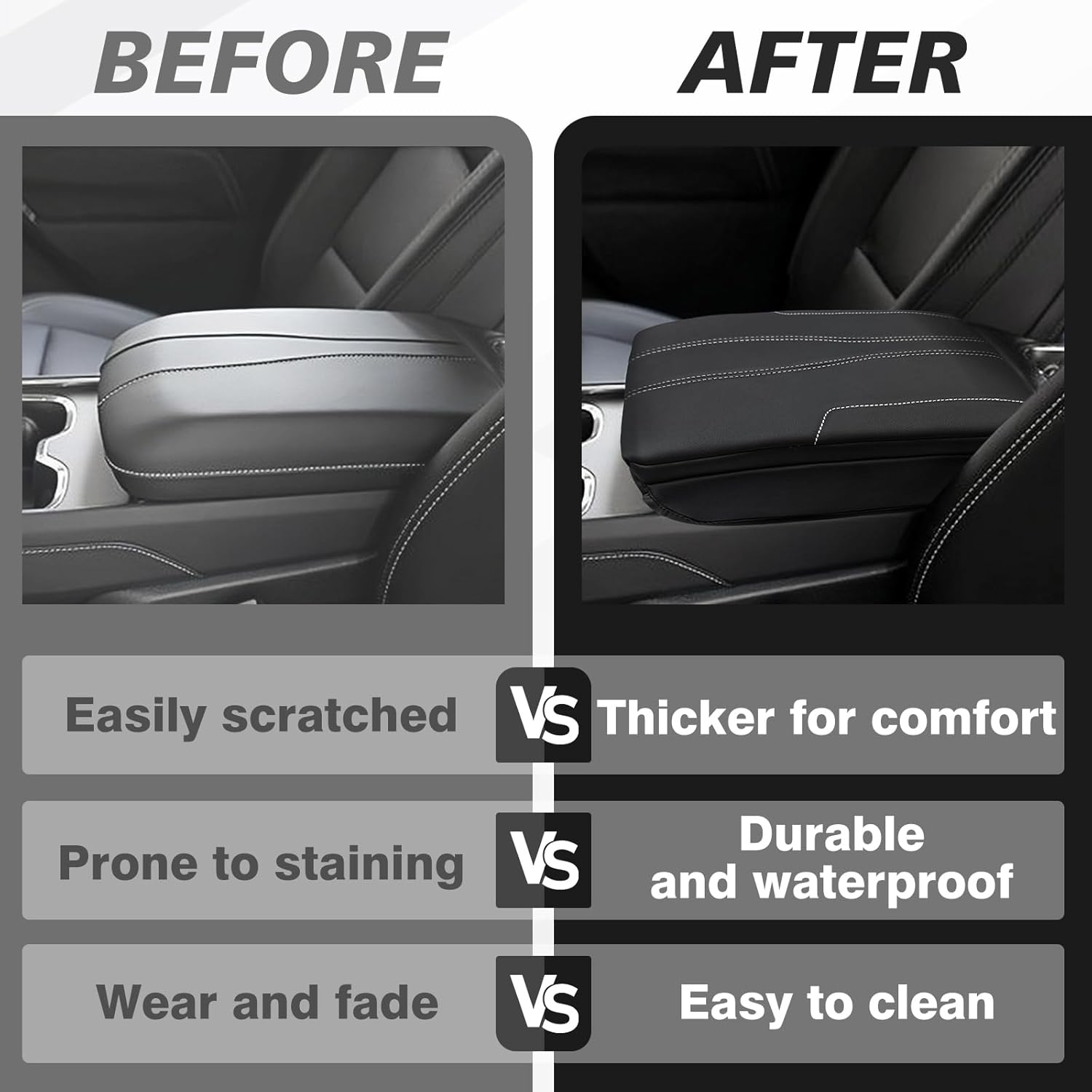 - Unique Design: Designed according to the OEM seat texture to make it match your interior perfectly and even better. The armrest cover is crafted with high-quality Vegan Leather and an extra layer of foam, which is skin-friendly, breathable and soft.
