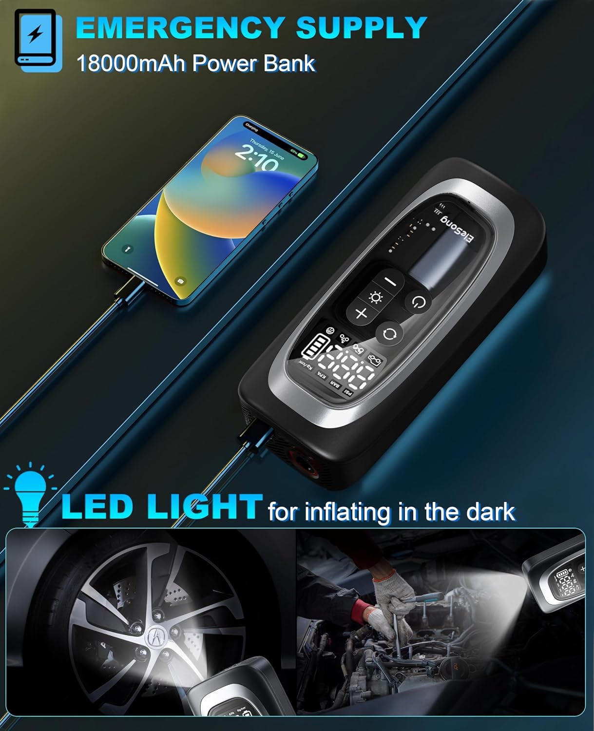 - Runs Cooler & Quieter with Smart Auto Shut-Off: Graphene-enhanced cooling and a high-efficiency motor keep this tire inflator cooler and quieter, even during prolonged use. Just set your target pressure—the device will auto shut off when it’s done, ensuring safety and precision