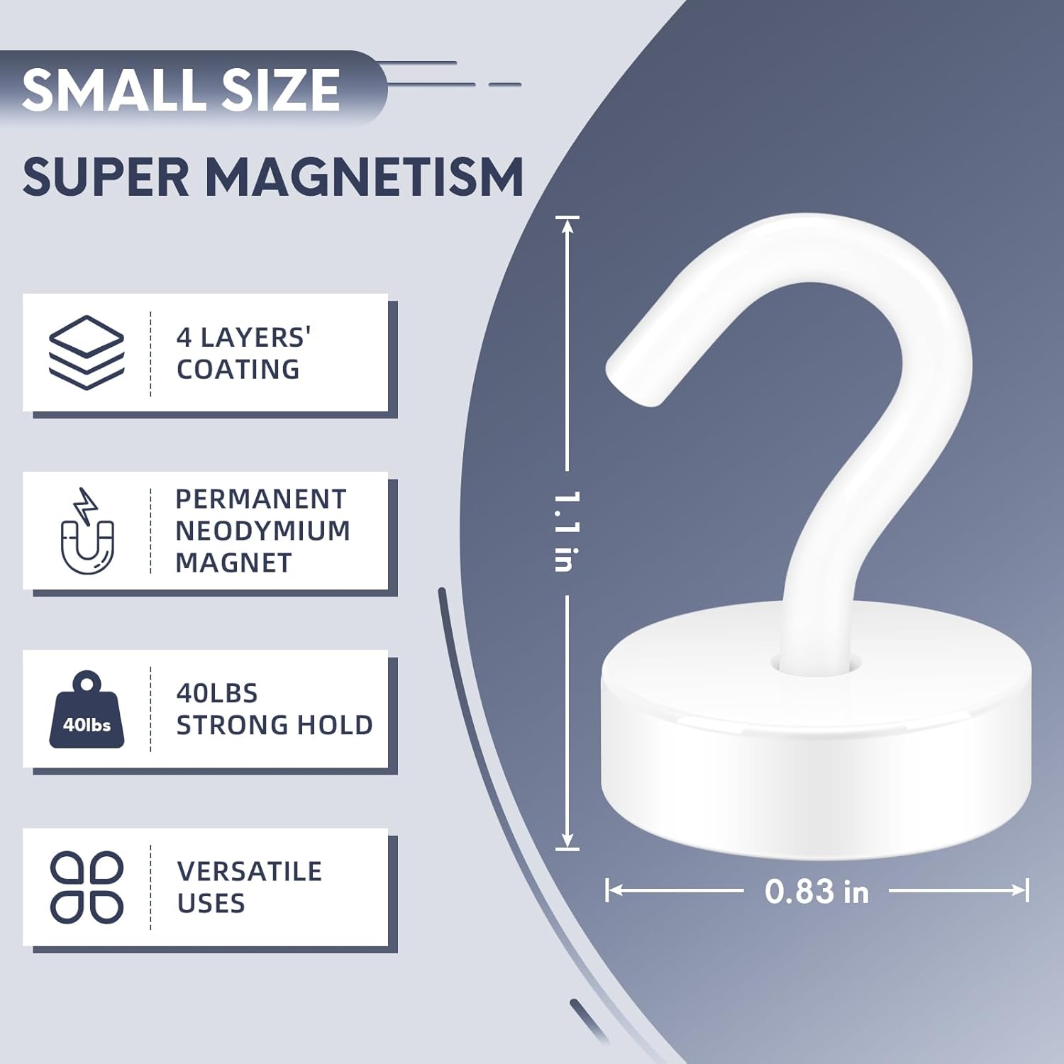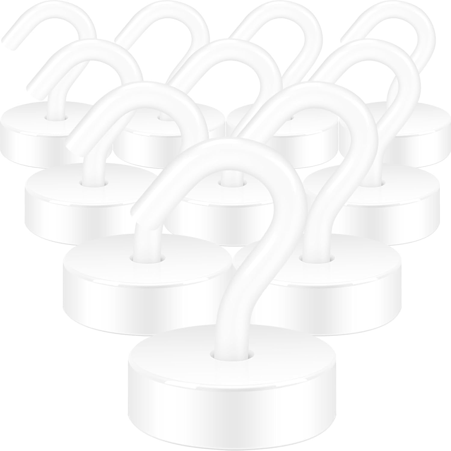 Neosmuk Magnetic Hooks, Cruise Ship Essentials, 40lb+ Heavy Duty Magnetic Hooks for Cruise Cabins, Refrigerator, Grill, Hanging, and Travel | Extra Strong Must-Haves Magnet Hook,White,Pack of 10