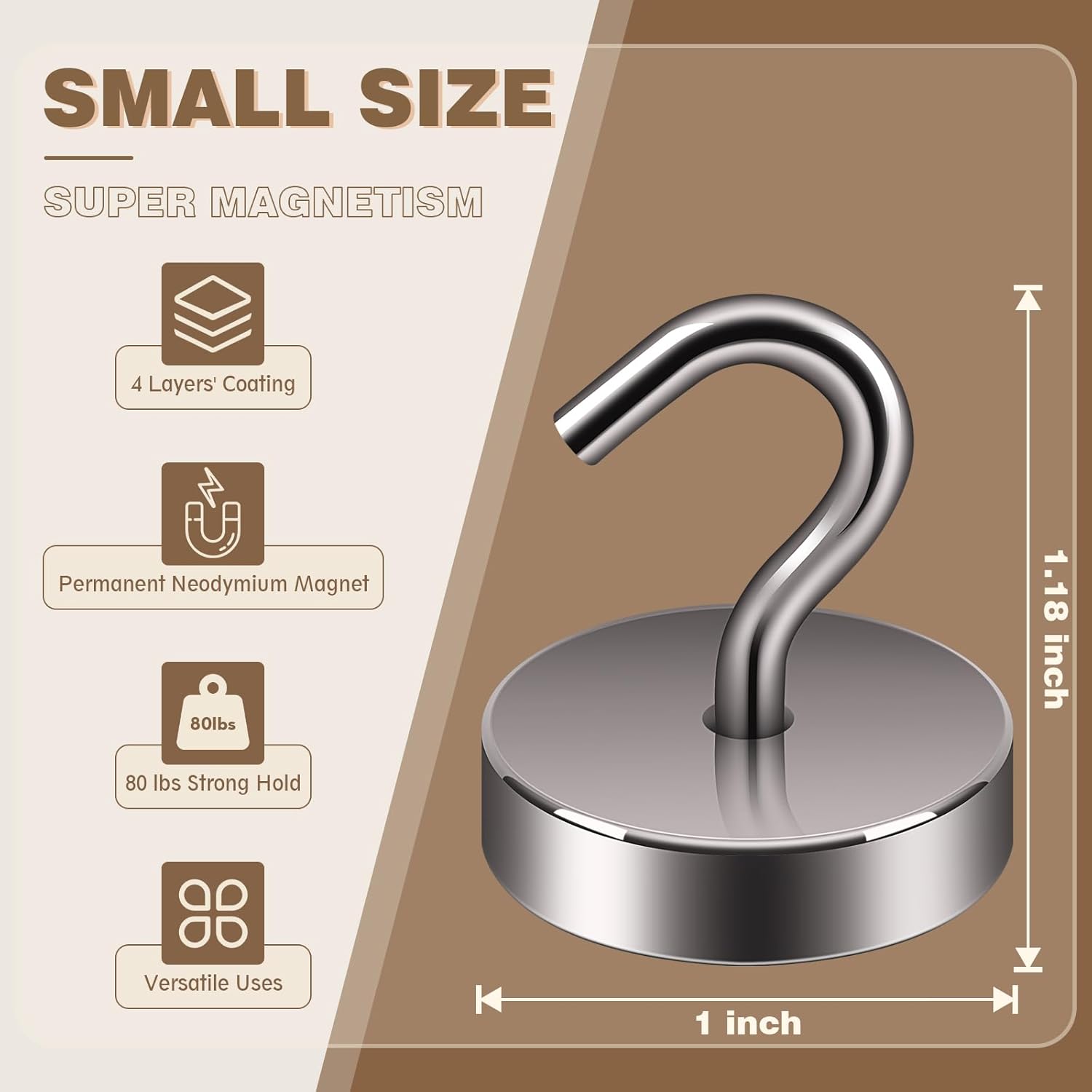 Neosmuk Magnetic Hooks, Cruise Ship Essentials, 80lb+ Heavy Duty Magnetic Hooks for Cruise Cabins, Refrigerator, Grill, Hanging, and Travel | Extra Strong Must-Haves Magnet Hook,Brown