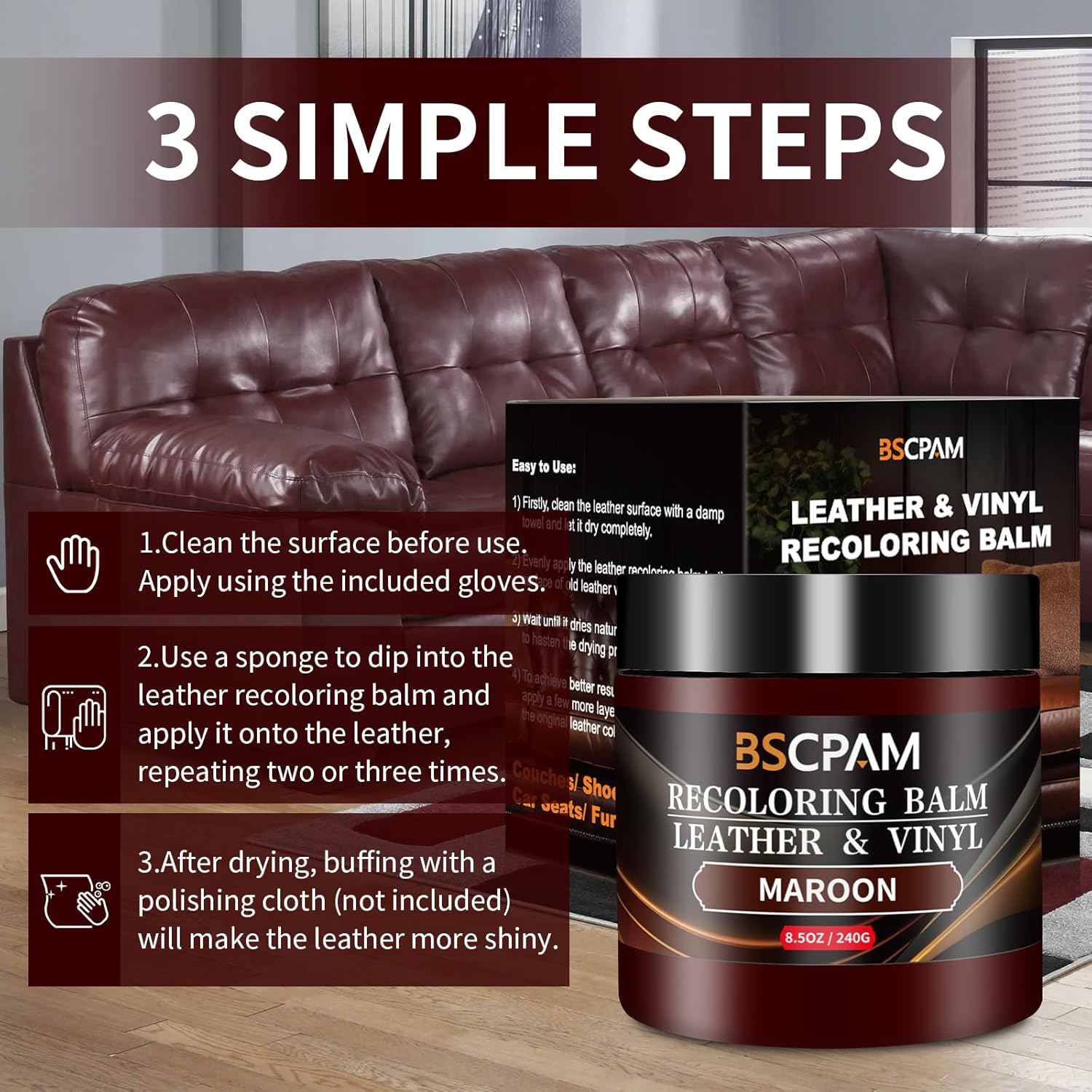 Maroon Leather Recoloring Balm,Leather Couch Scratch/Stain Remover,Leather Repair kit for Vinyl Furniture and Car Interior,Leather Dye Paint for Scratched and Faded Leather Couches